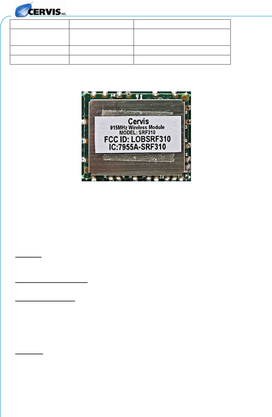 Equipment containing the SRF310 RT module has been evaluated for RF exposure hazards
