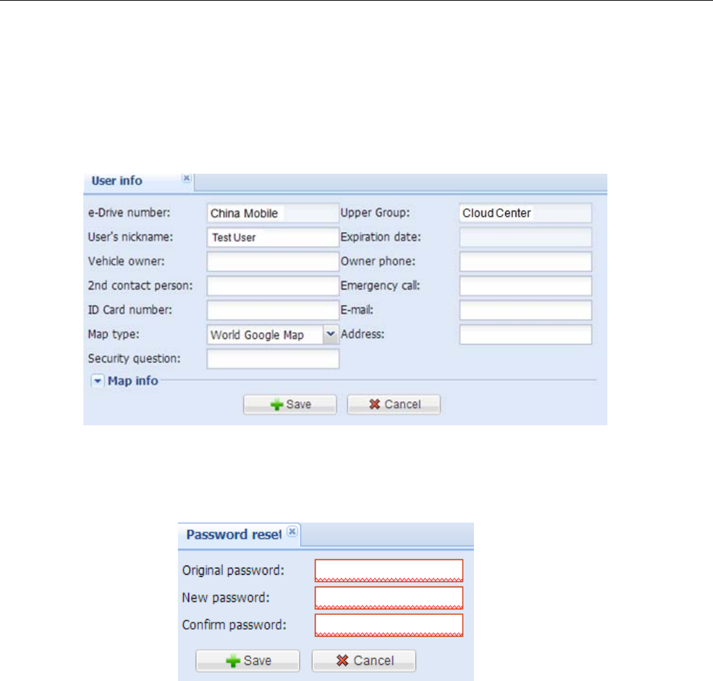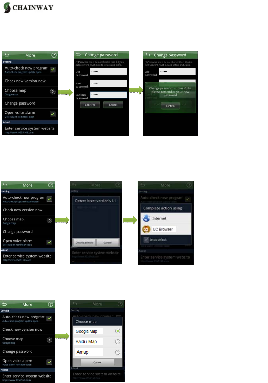 Main menu -> More -> Set -> Change password -> Input new password -> Ensure