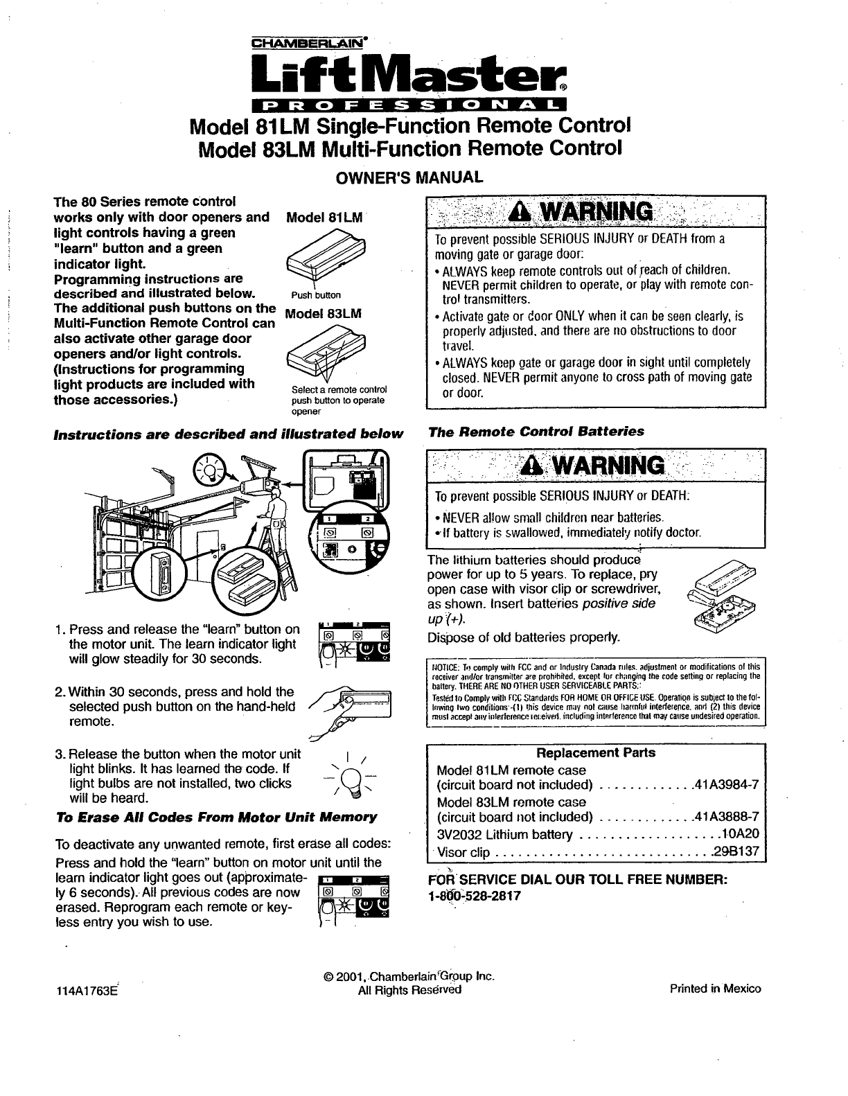 Chamberlain Group The 1889 Remote Control Transmitter User Manual