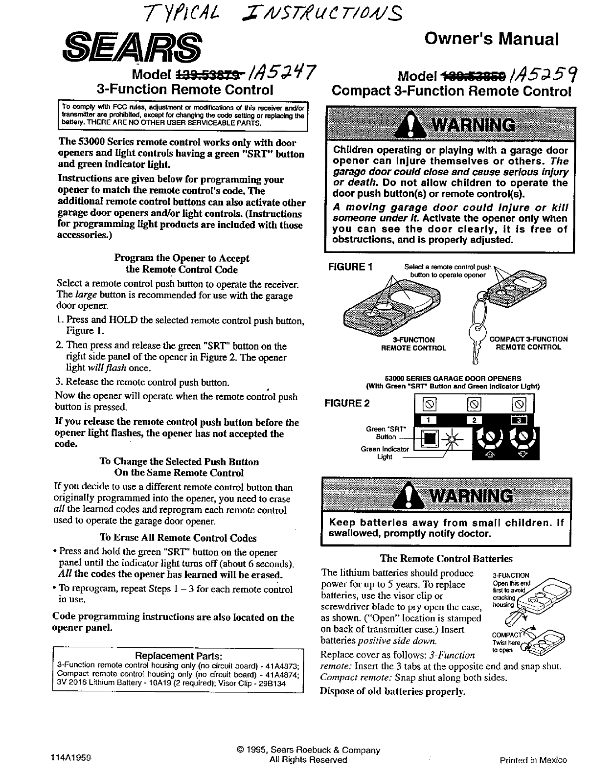 Chamberlain Group Inc, The Garage Door Opener Transmitter instructions of 1A5247