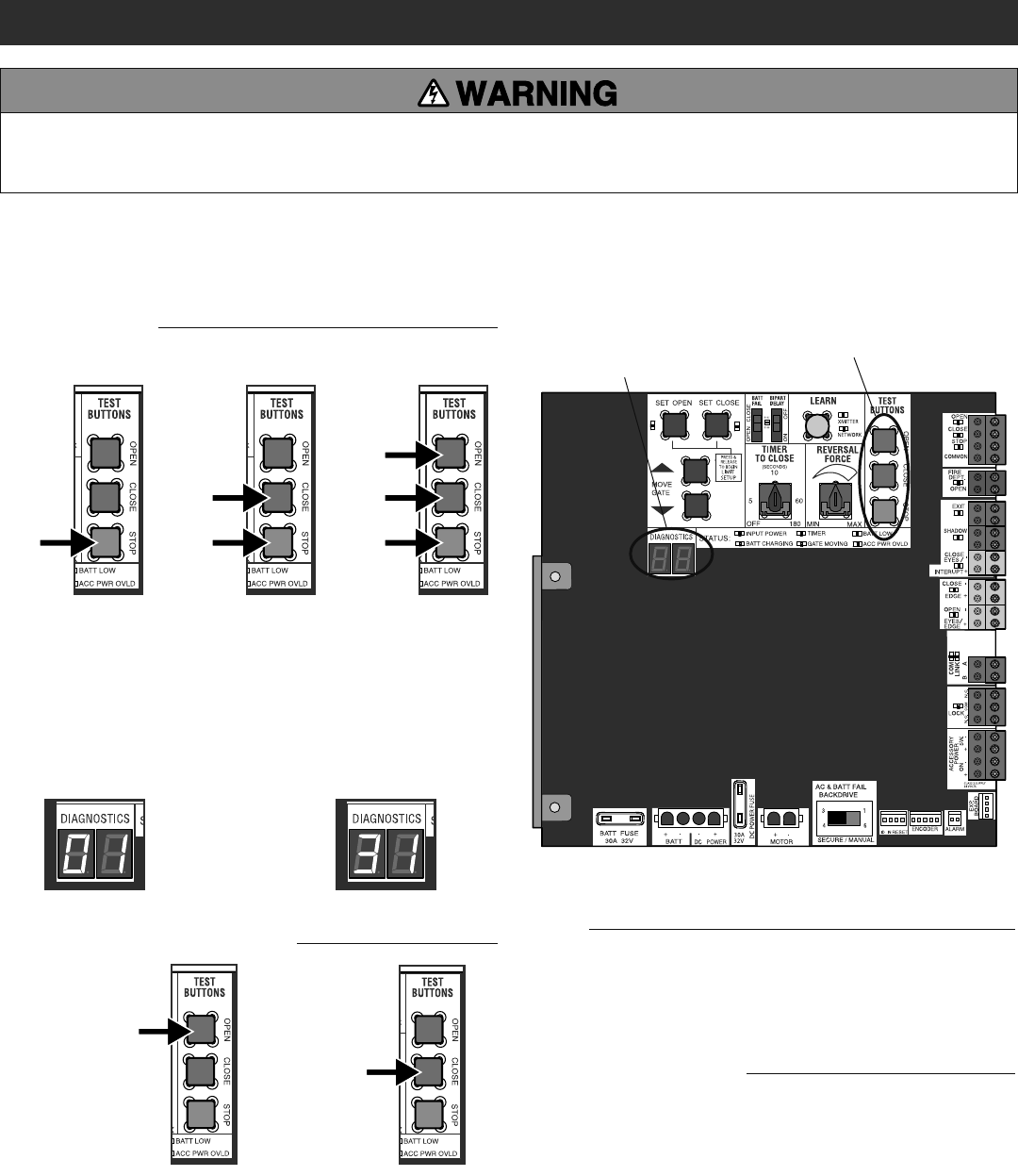 93 RPM / STALL Reversal Check for obstruction. If no obstruction, check the operator wiring and