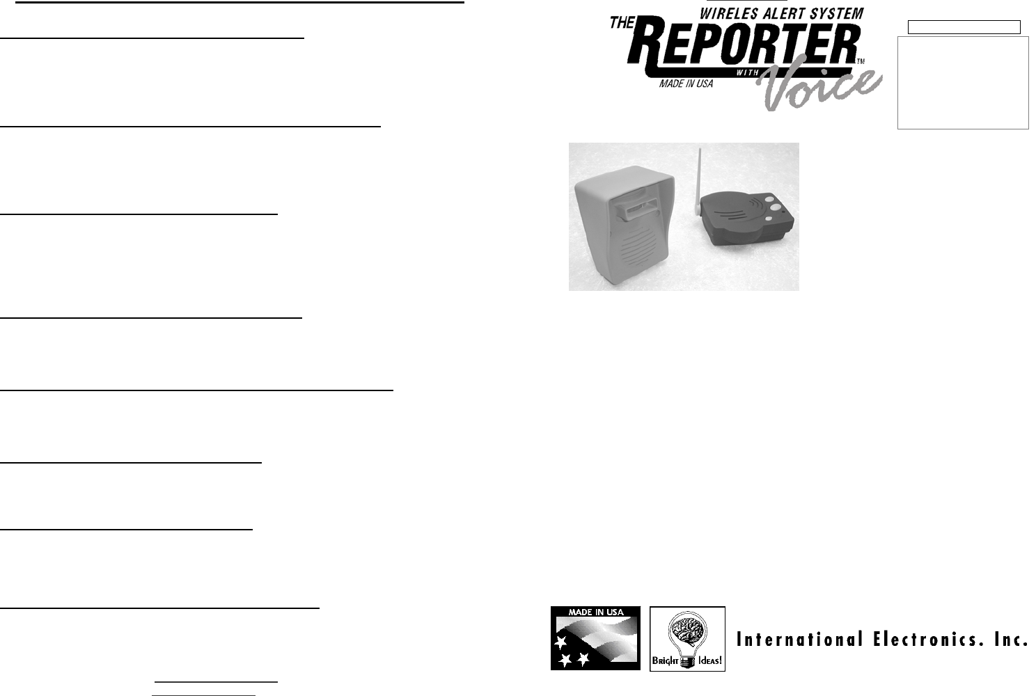 the manufacturer’s web page at www.internationalelect.com. You can receive free technical assistance