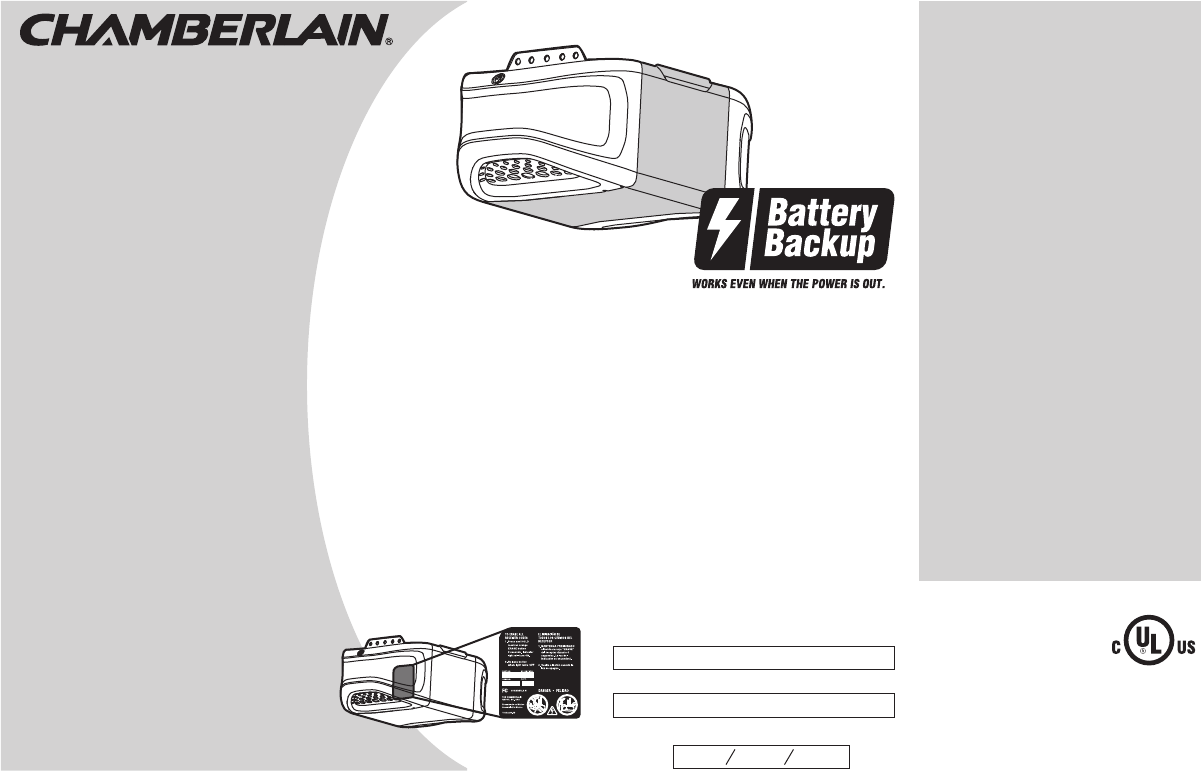 Chamberlain 1 4 Hps Hd930Ev Users Manual Belt Drive Battery Backup For Garage Door Opener, HD920EV, HD930EV, LW5000EV, WD962KEV, WD962KPEV, WD962MLEV, 349544