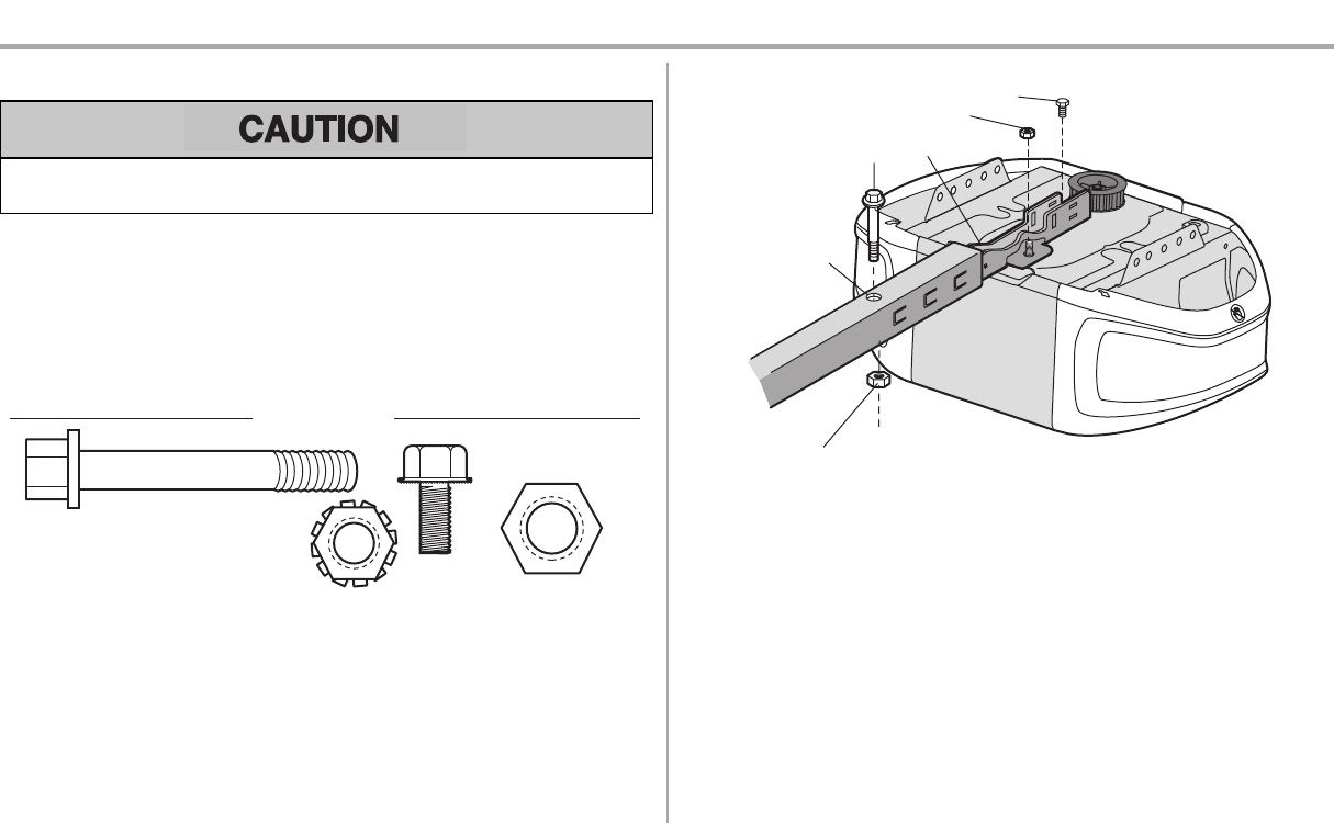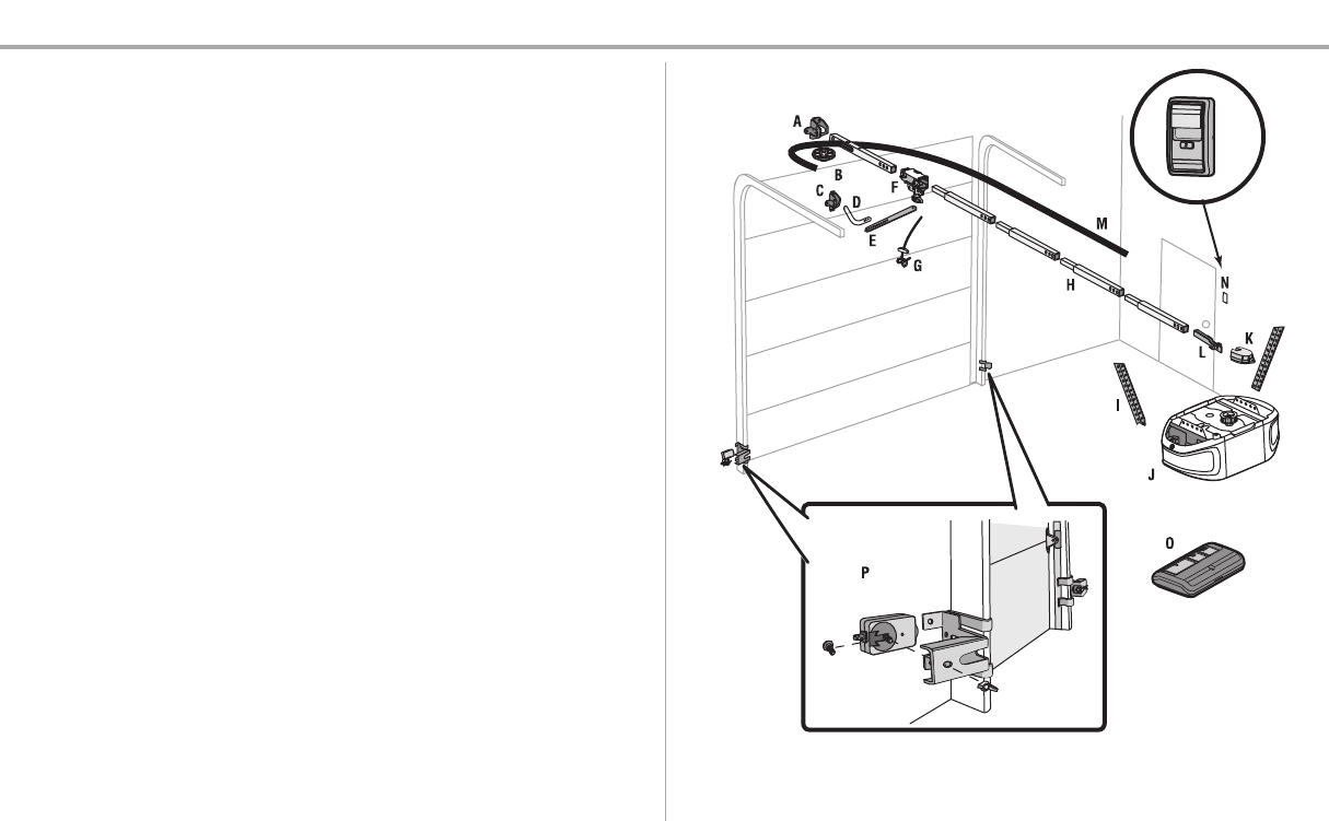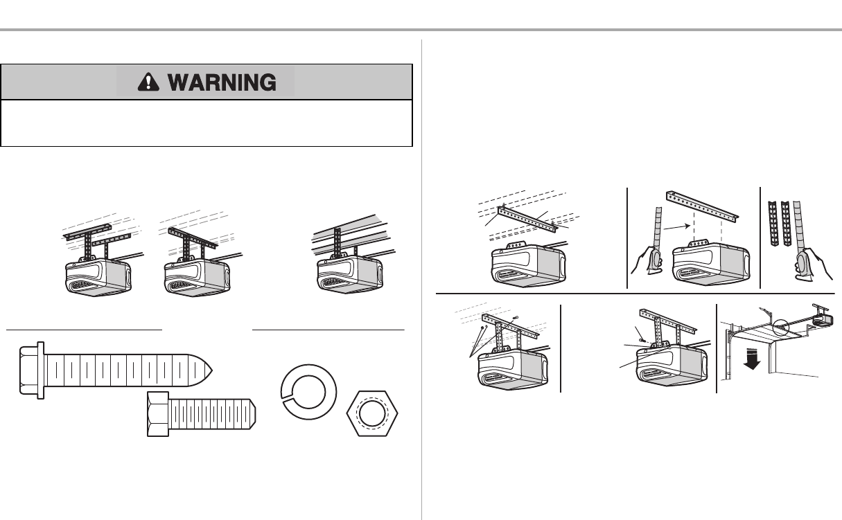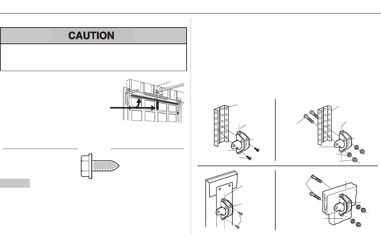 lNEVER try to loosen, move or adjust garage door, door springs, cables, pulleys, brackets or their