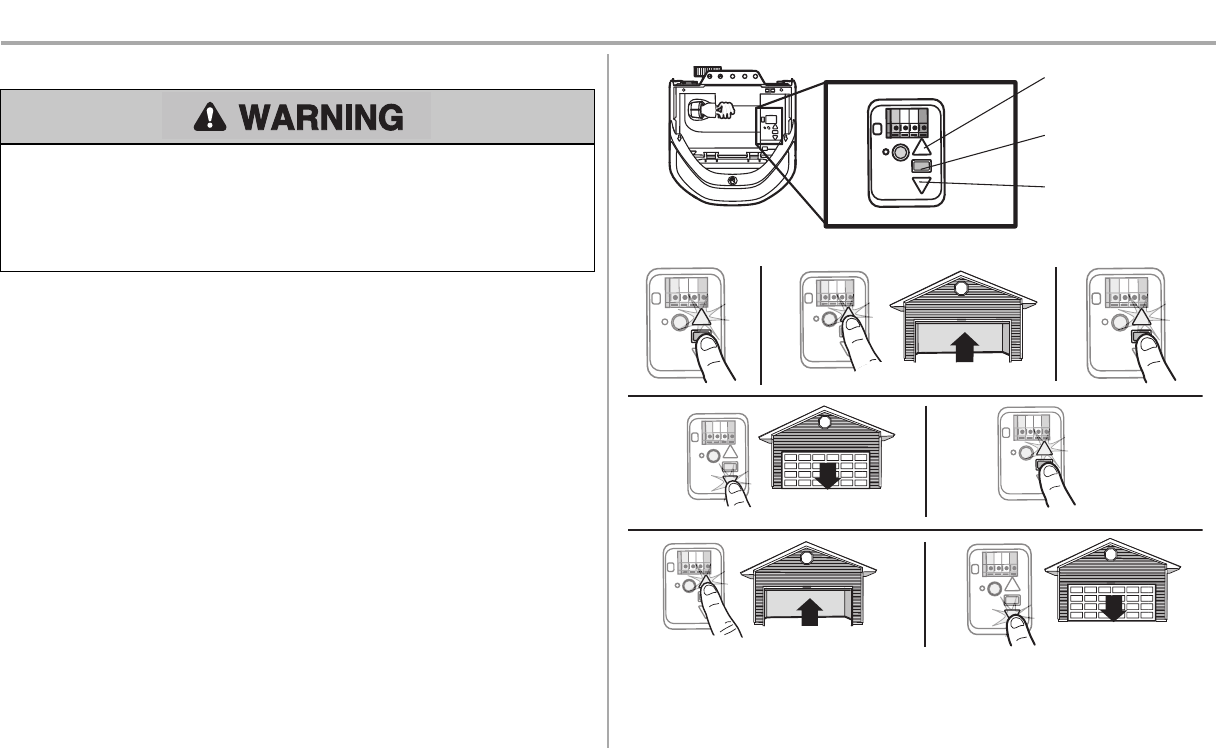 ■ DO NOT enable the Timer-to-Close feature if you are installing the garage door