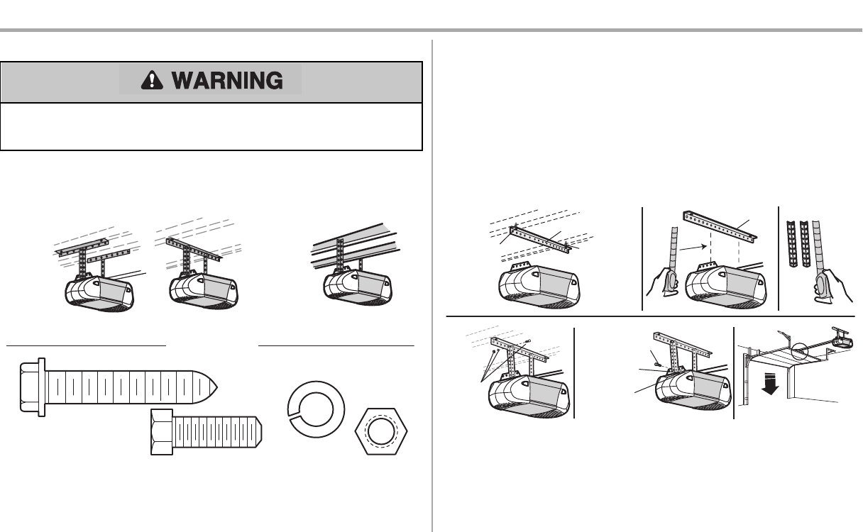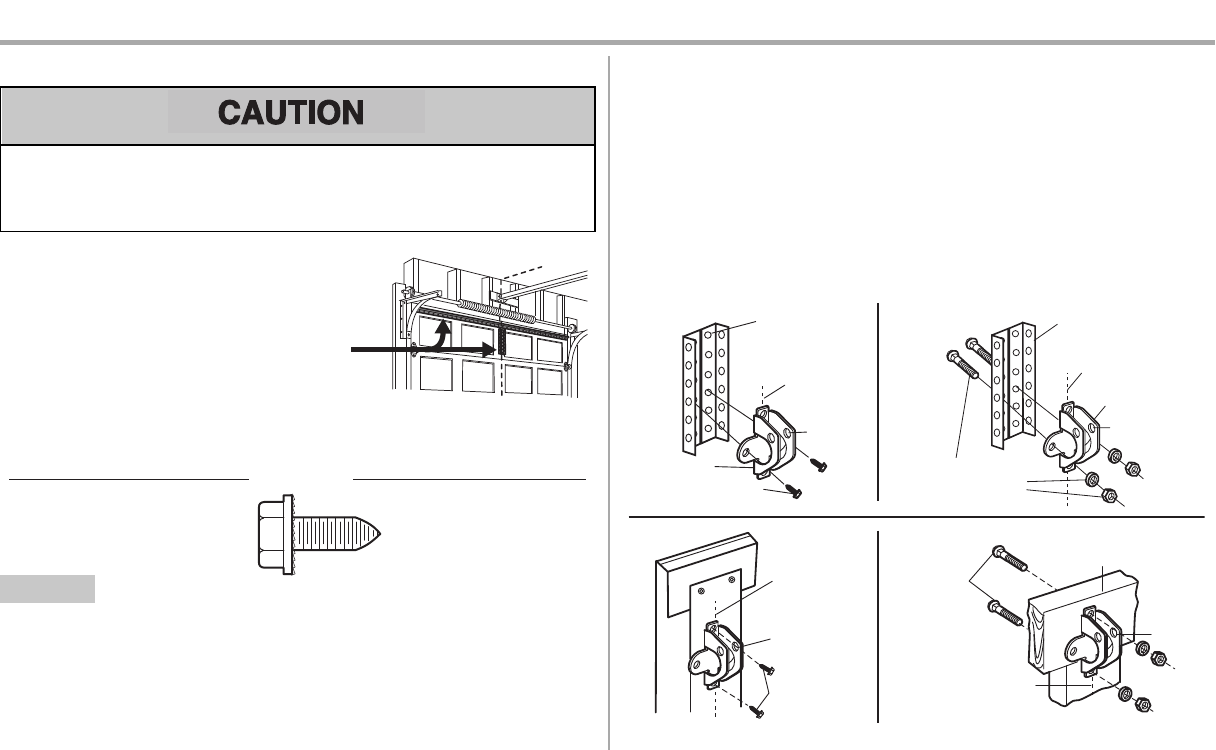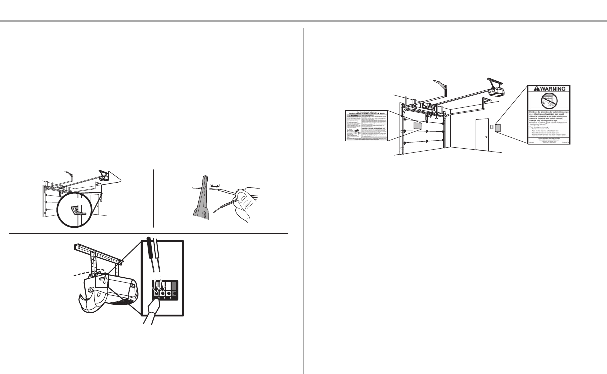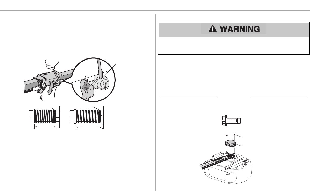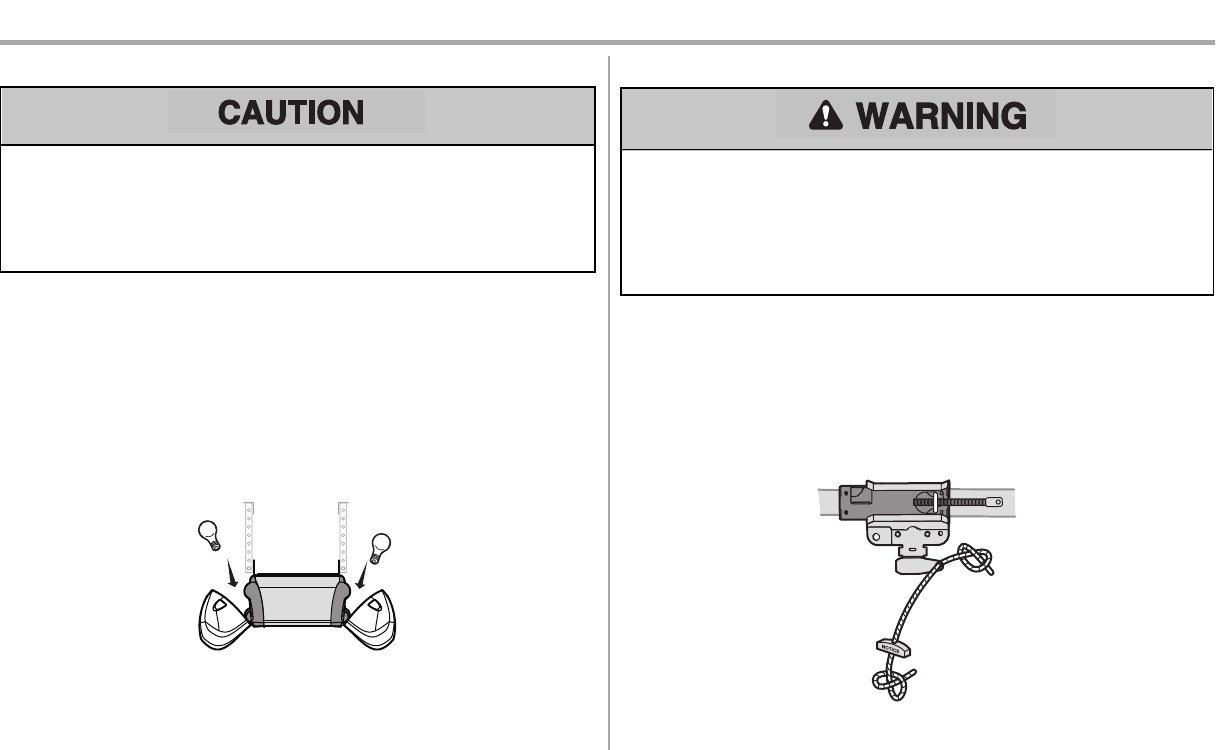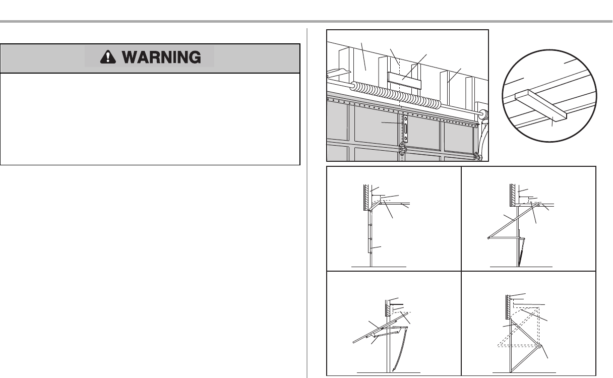 lNEVER try to loosen, move or adjust garage door, door springs, cables, pulleys, brackets or their