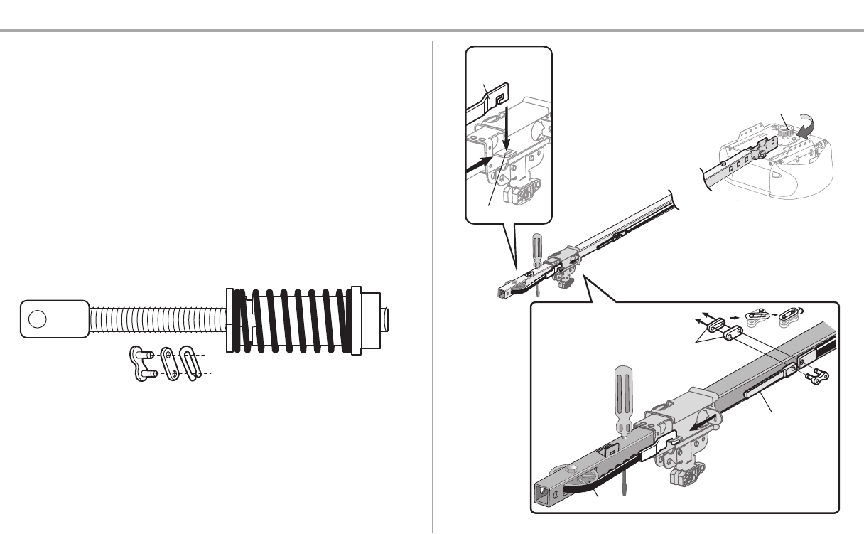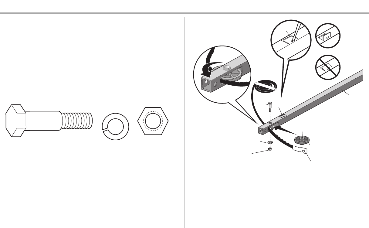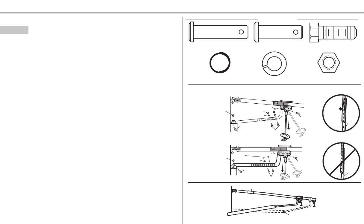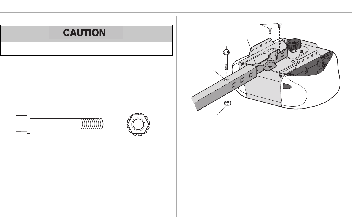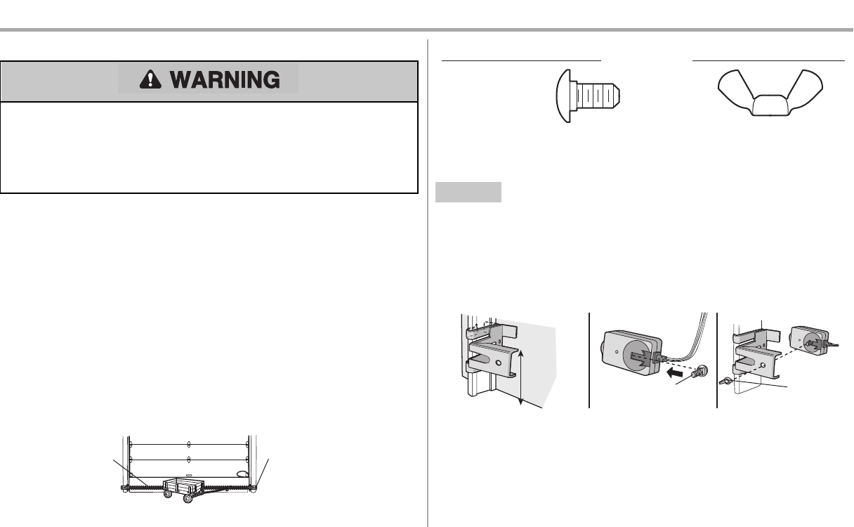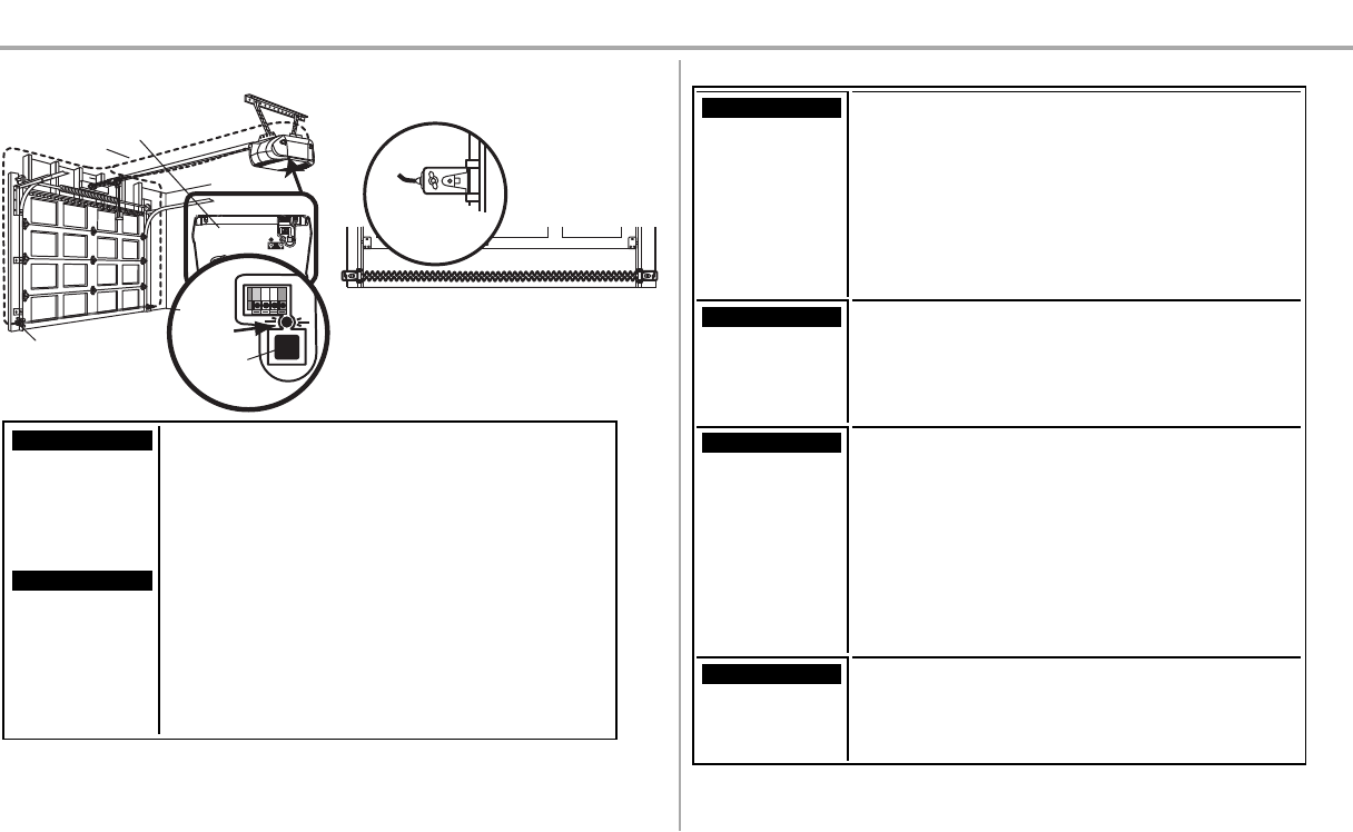 lNEVER try to loosen, move or adjust garage door, door springs, cables, pulleys, brackets or their