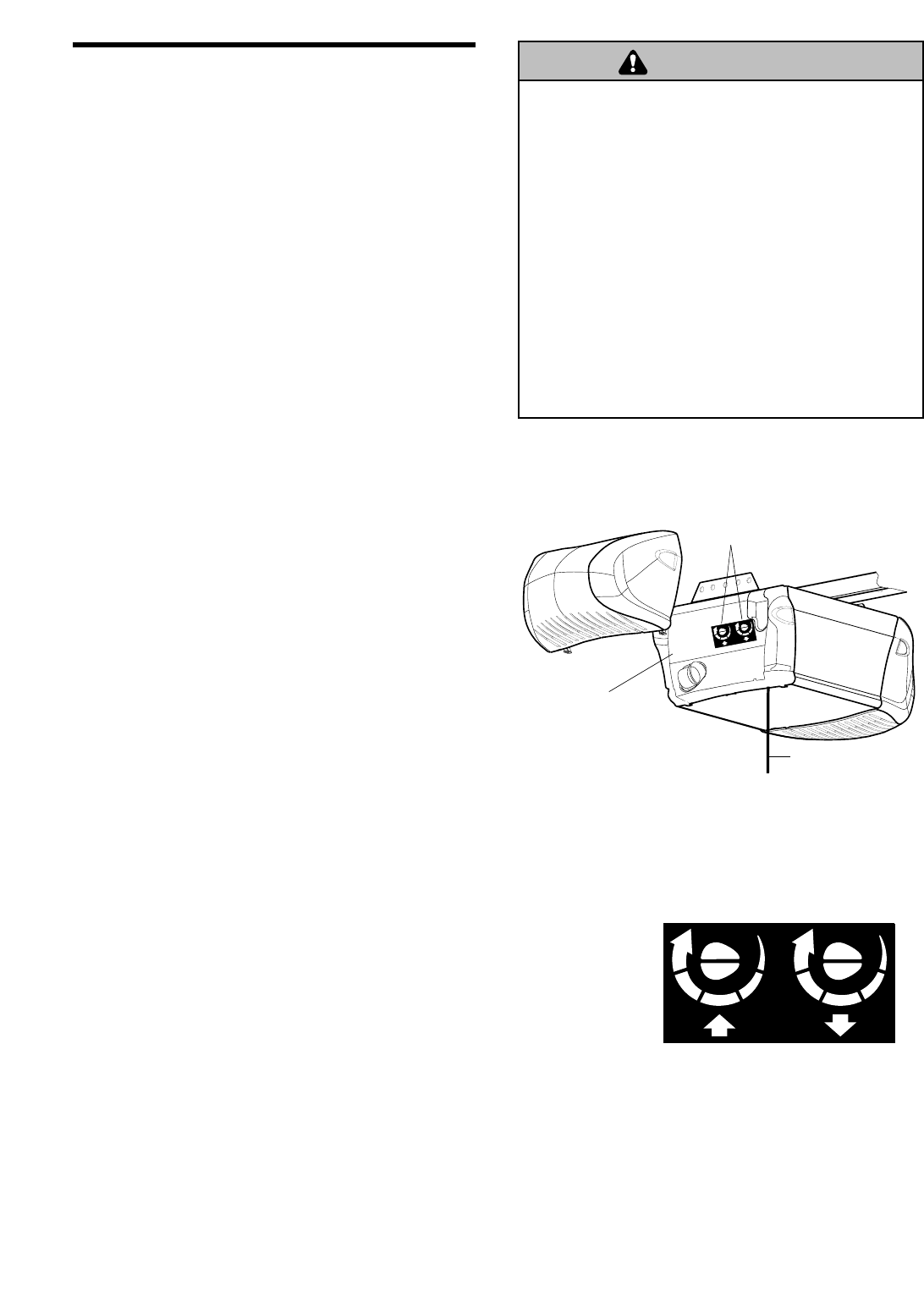 to operate properly with your garage door, must be adjusted and periodically tested in accordance with the Owner’s Manual.