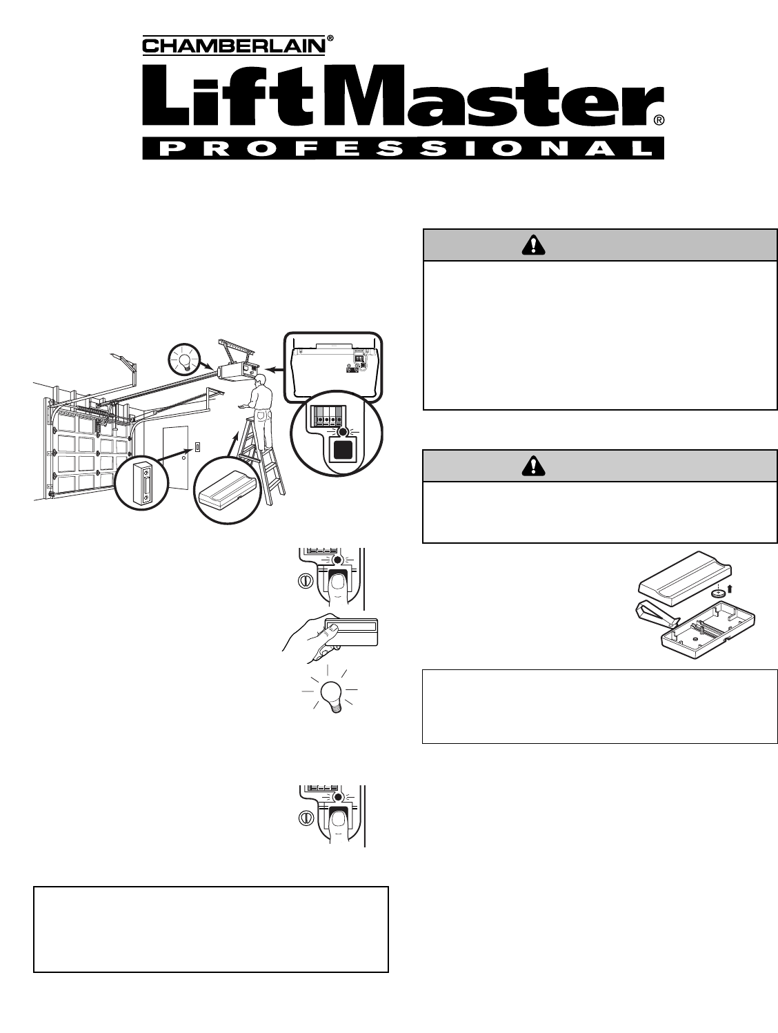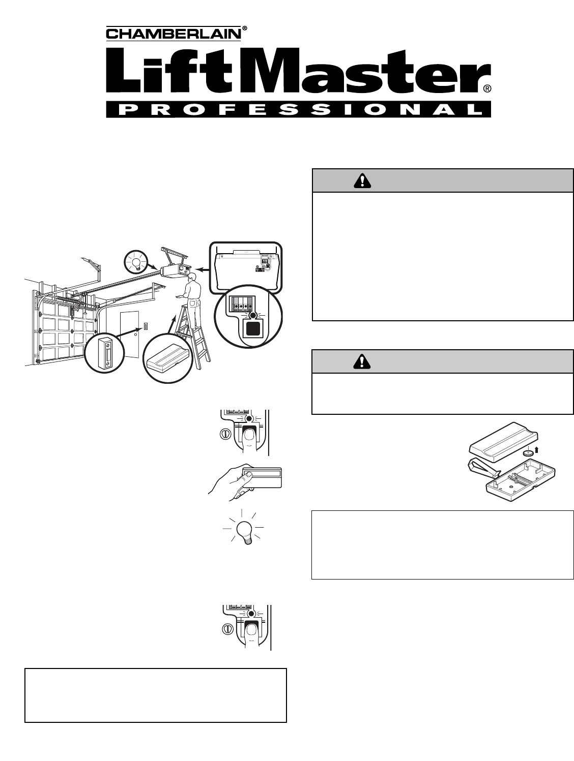 • Activate gate or door ONLY when it can be seen clearly, is properly