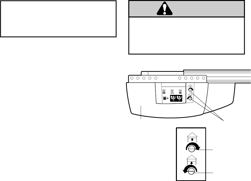 to operate properly with your garage door, must be adjusted and periodically tested in accordance with the Owner’s Manual.