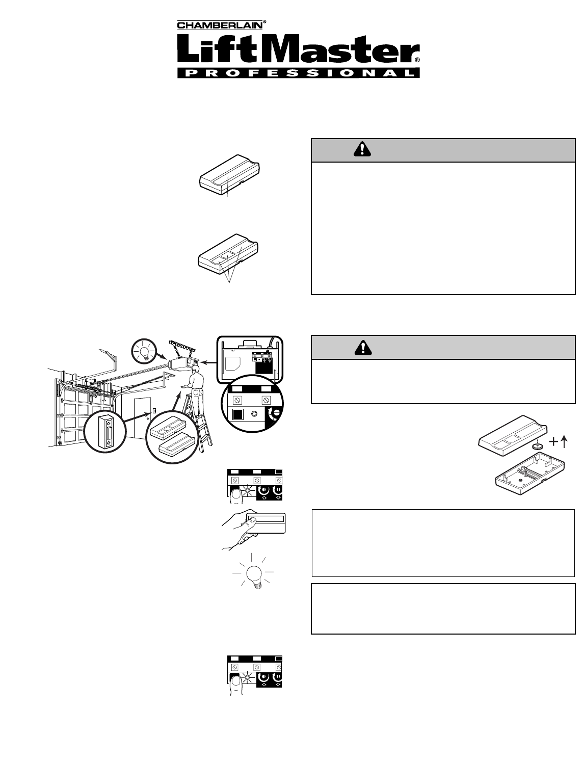 this receiver and/or transmitter are prohibited, except for changing the code setting or replacing