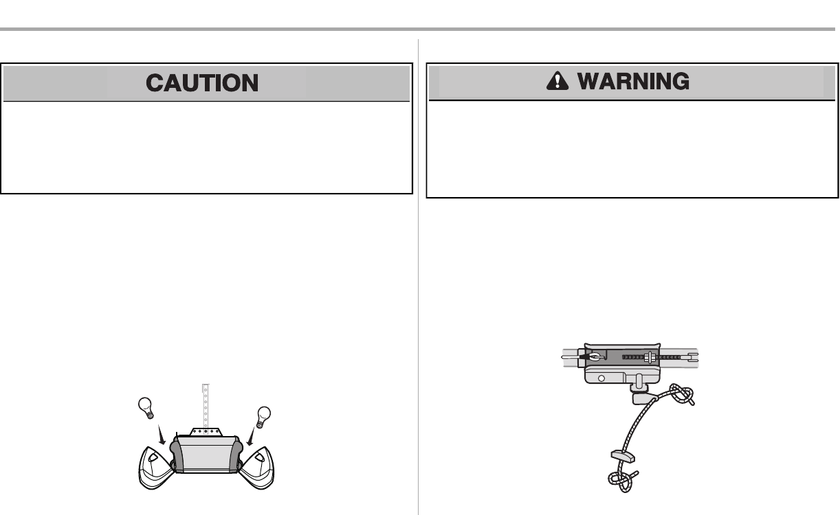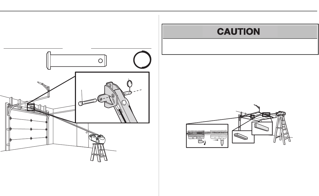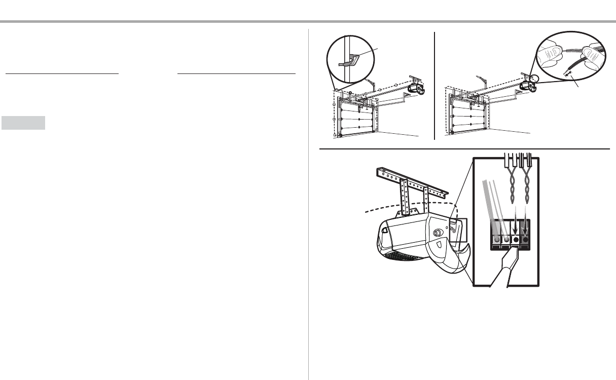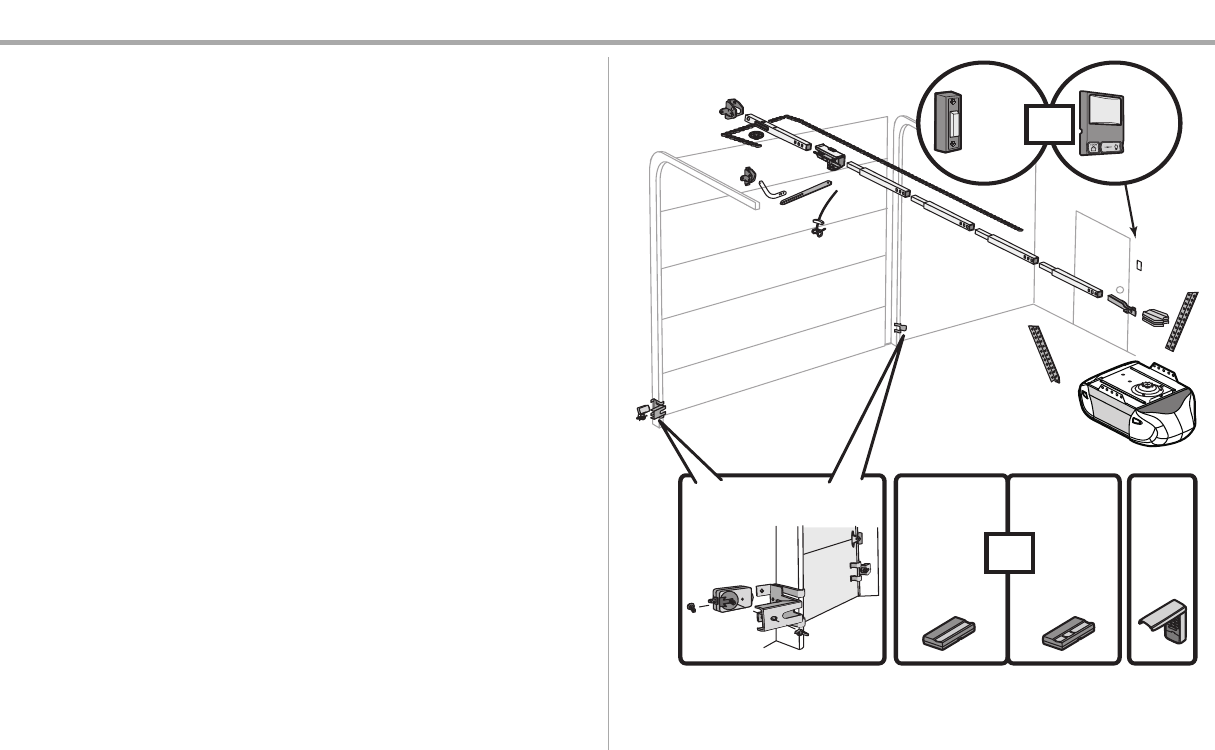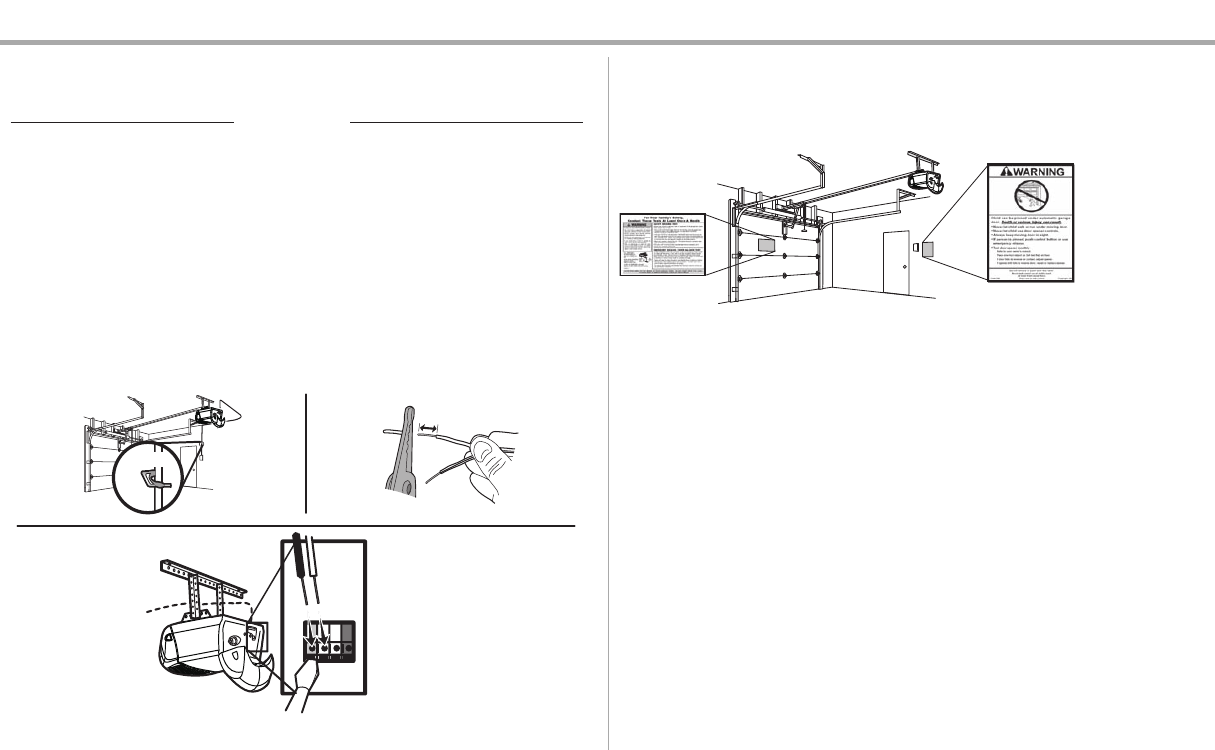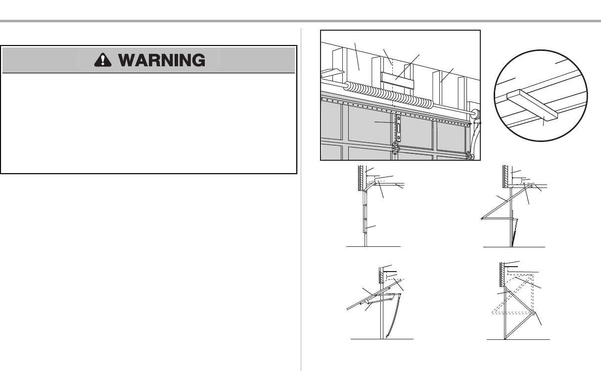 • NEVER try to loosen, move or adjust garage door, door springs, cables, pulleys, brackets or their