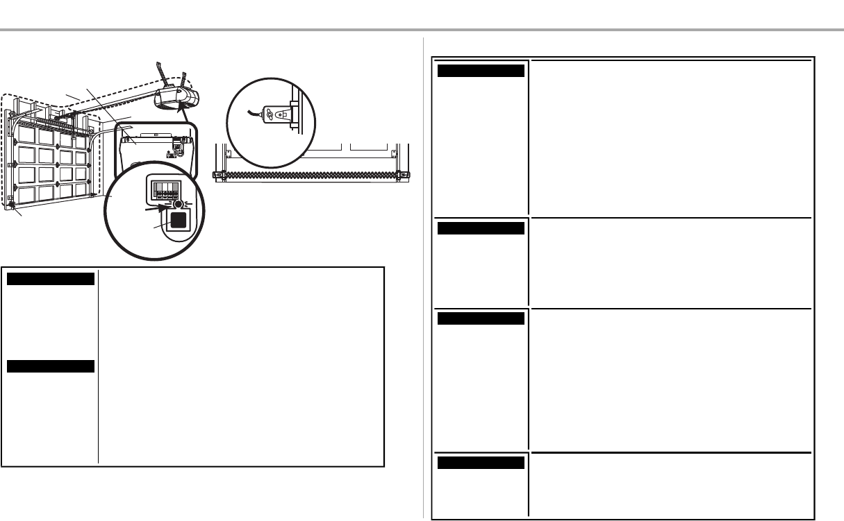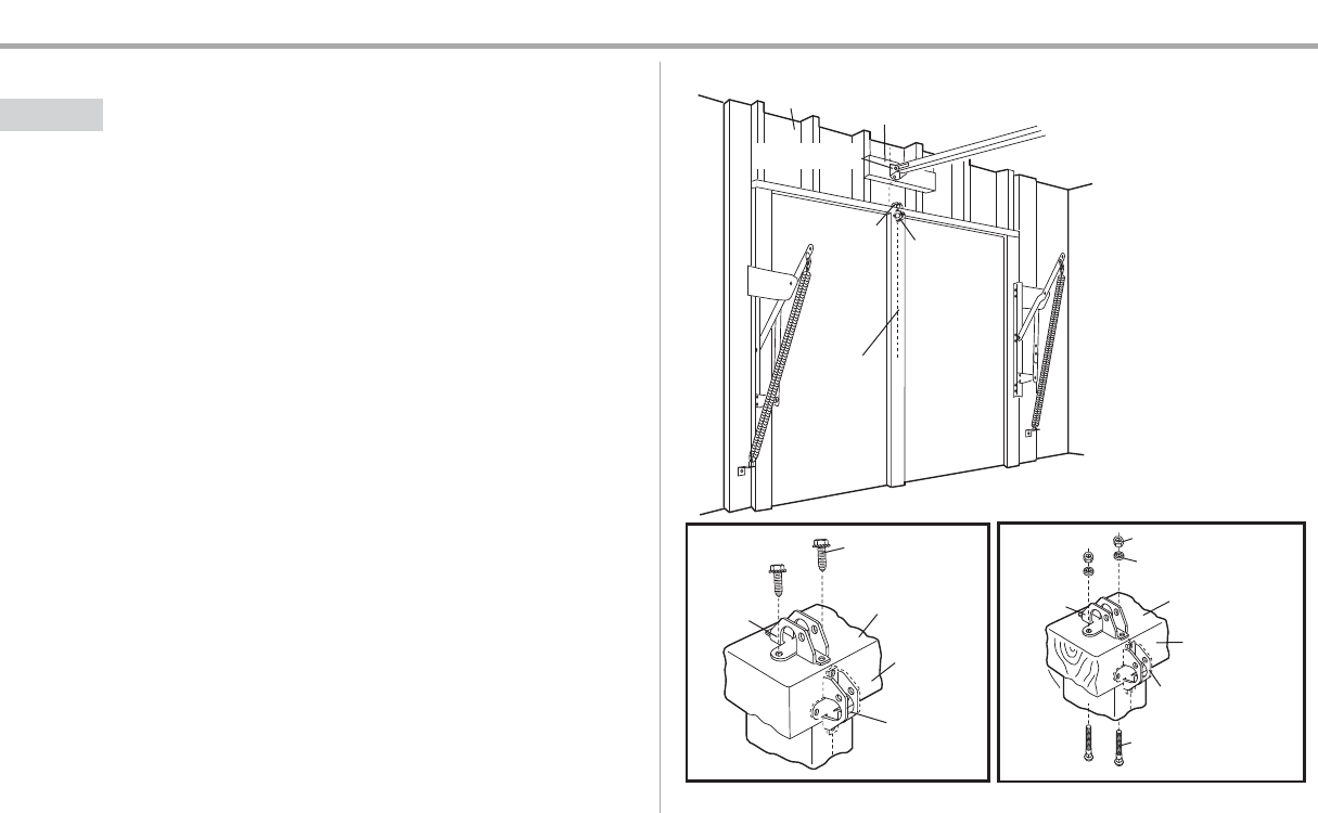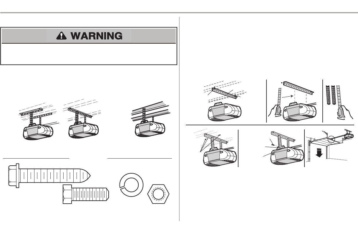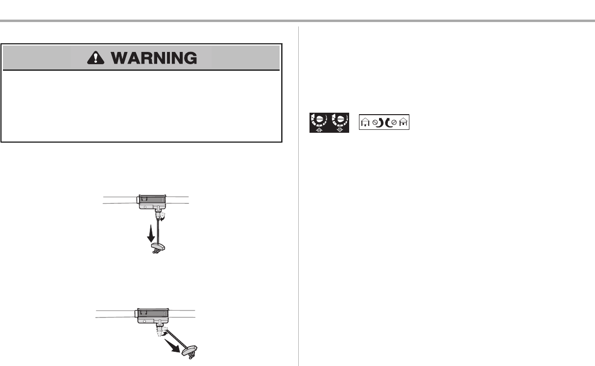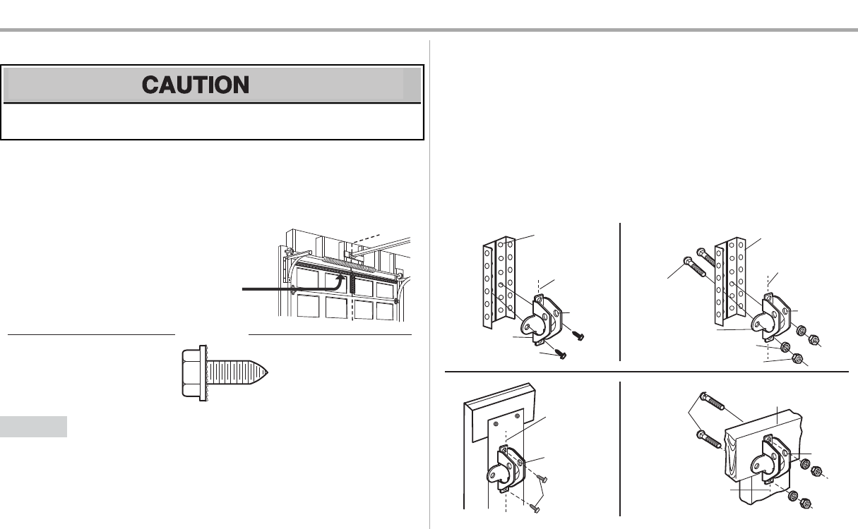 • NEVER try to loosen, move or adjust garage door, door springs, cables, pulleys, brackets or their