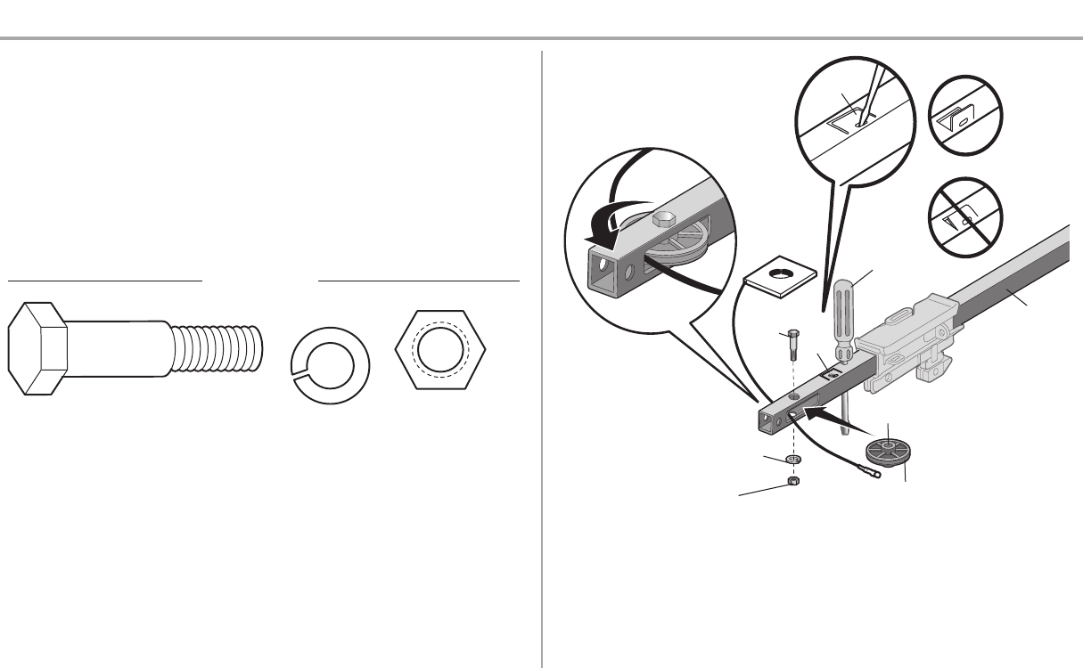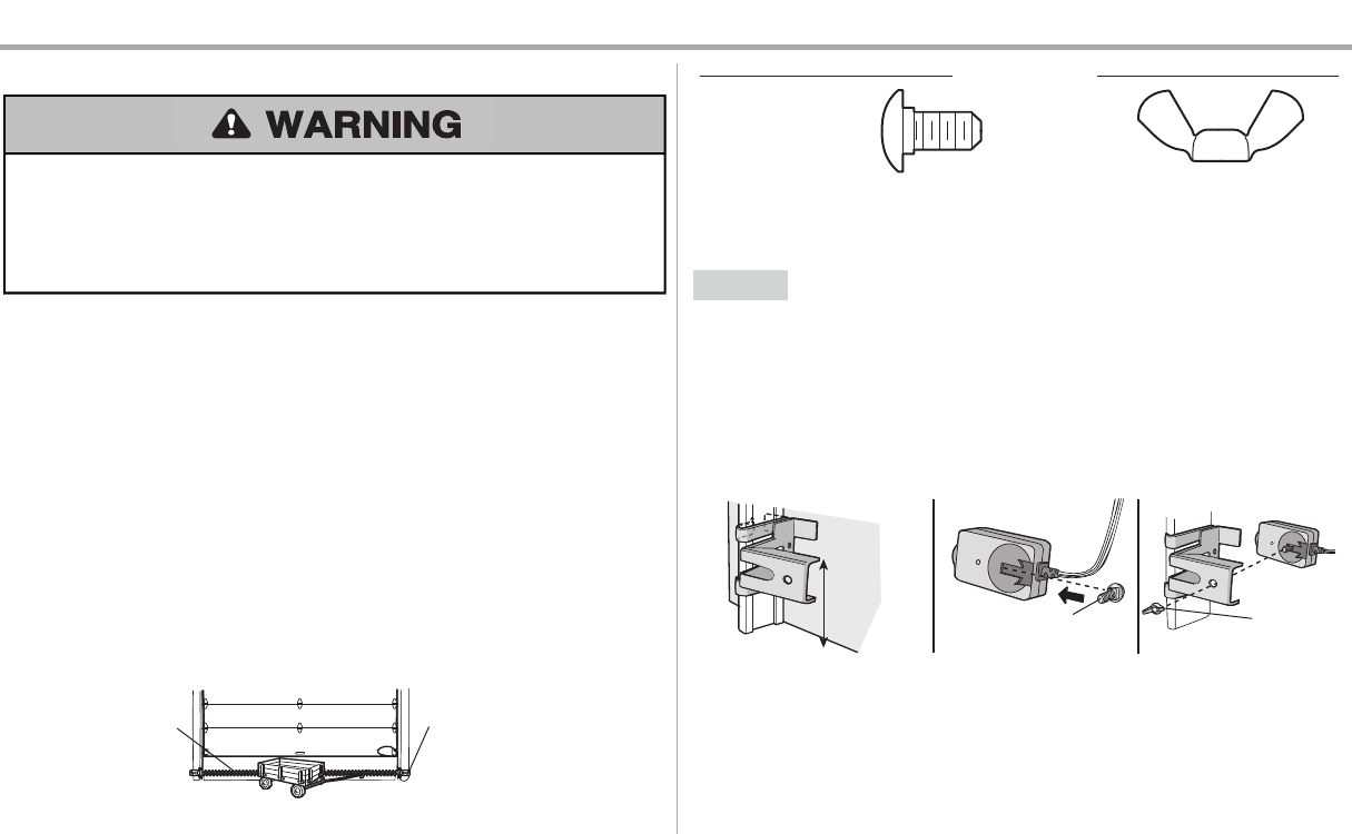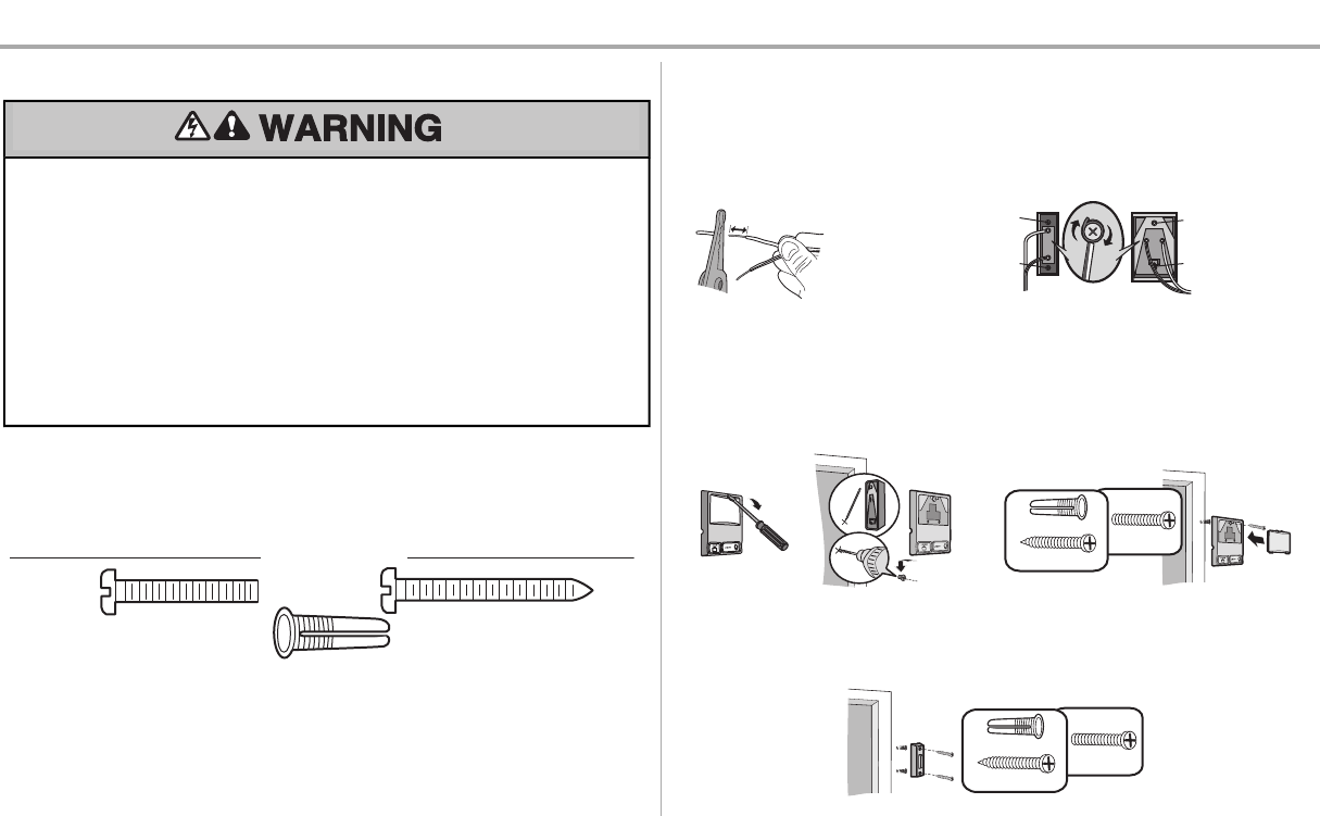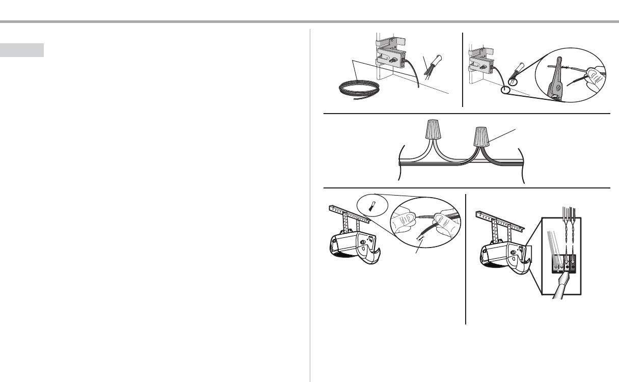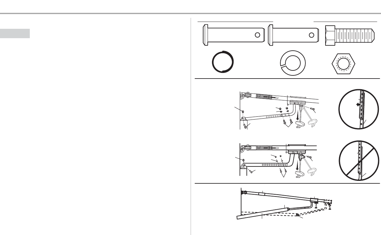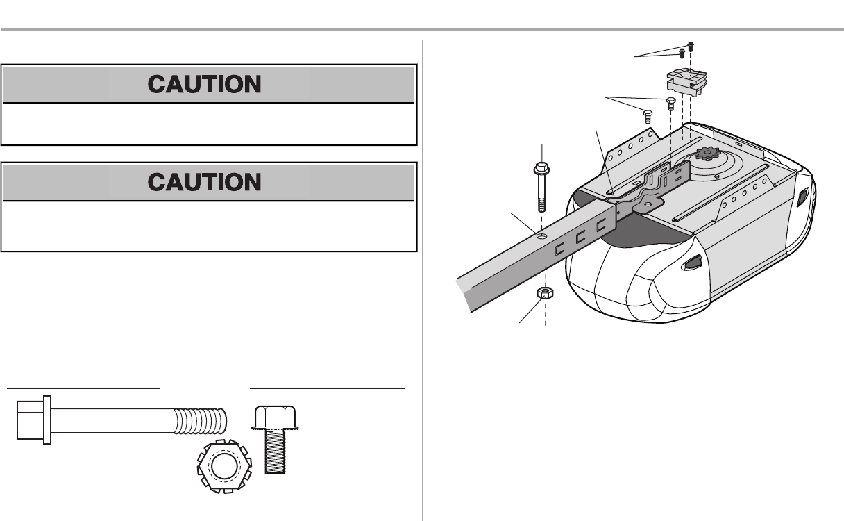 • NEVER try to loosen, move or adjust garage door, door springs, cables, pulleys, brackets or their