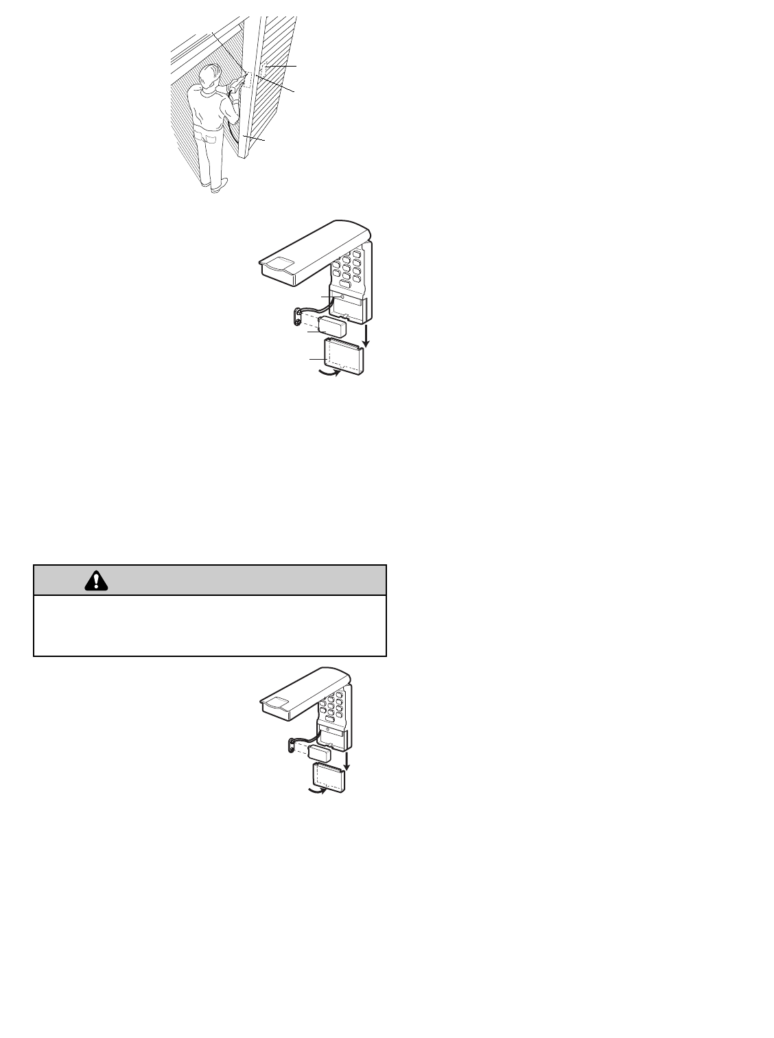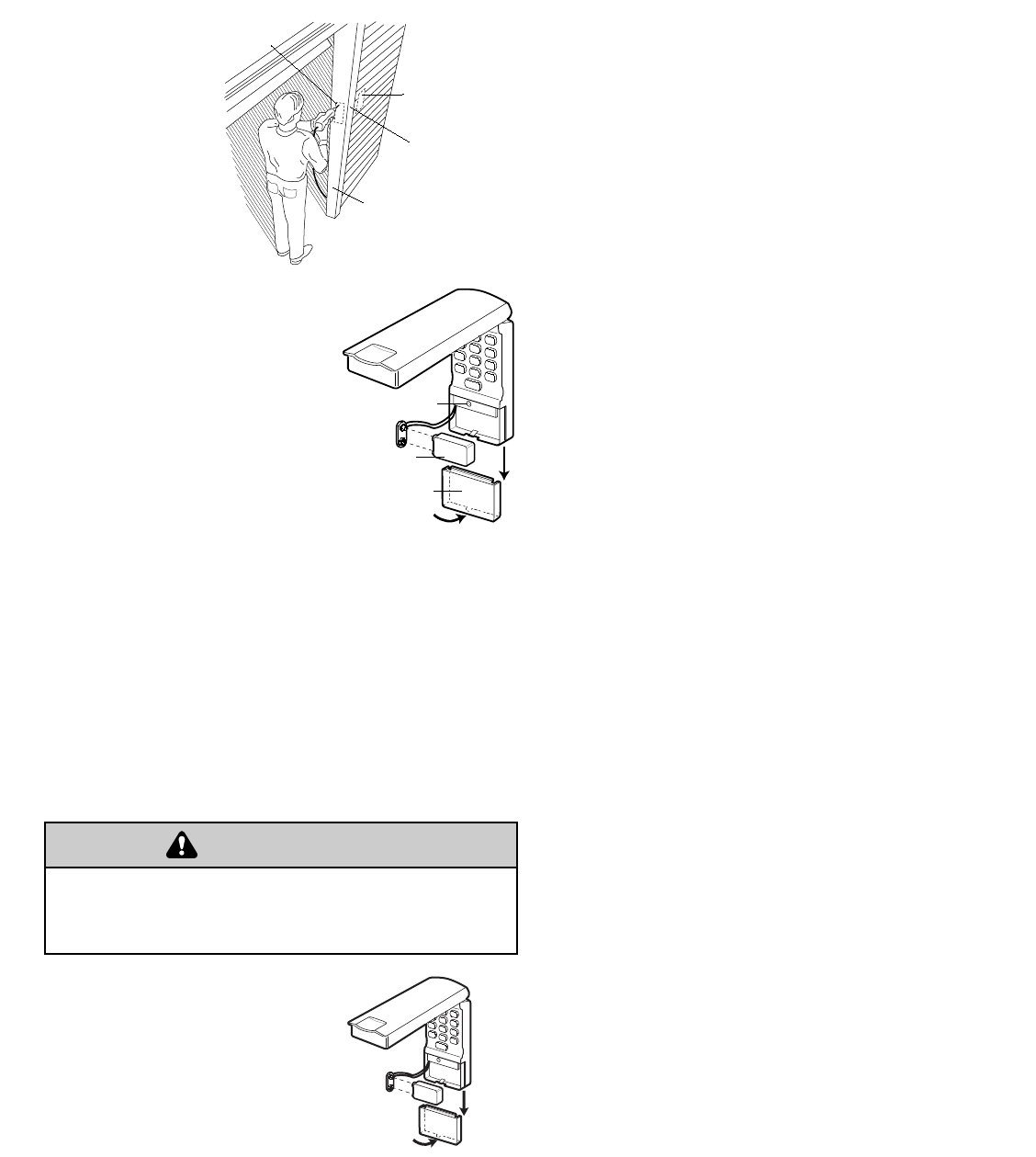 • Activate gate or door ONLY when it can be seen clearly, is properly