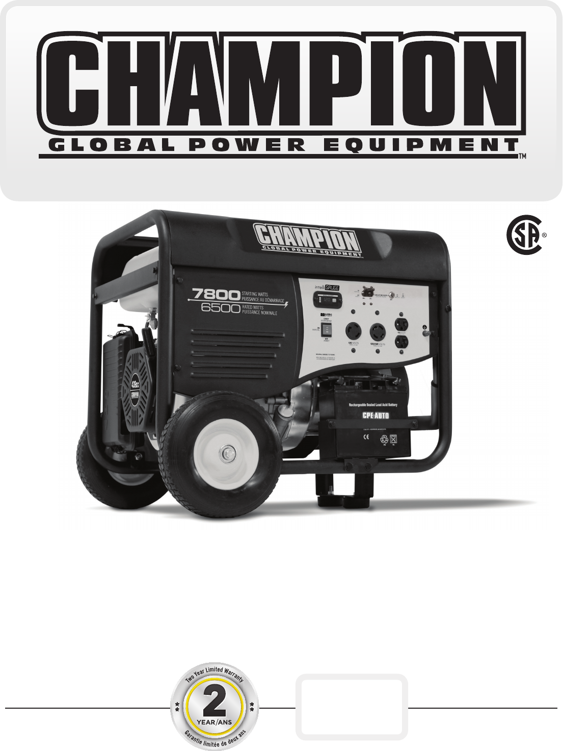 7800 Starting Watts / 6500 Rated Watts