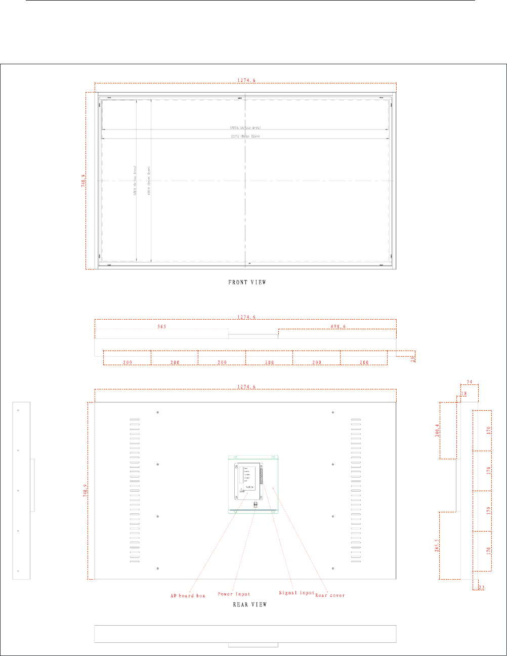 Outline Dimension (mm) 1274.6(L)x748.9(H)x92(D)