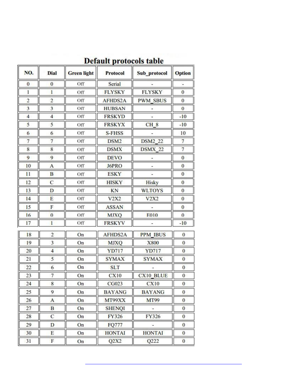 DEVO, Spectrum DSM2/DSMX, Flysky, Esky, Frsky, WLtoys, Hubsan, Hisky, Futaba SFHSS Assan