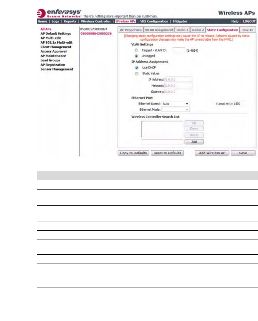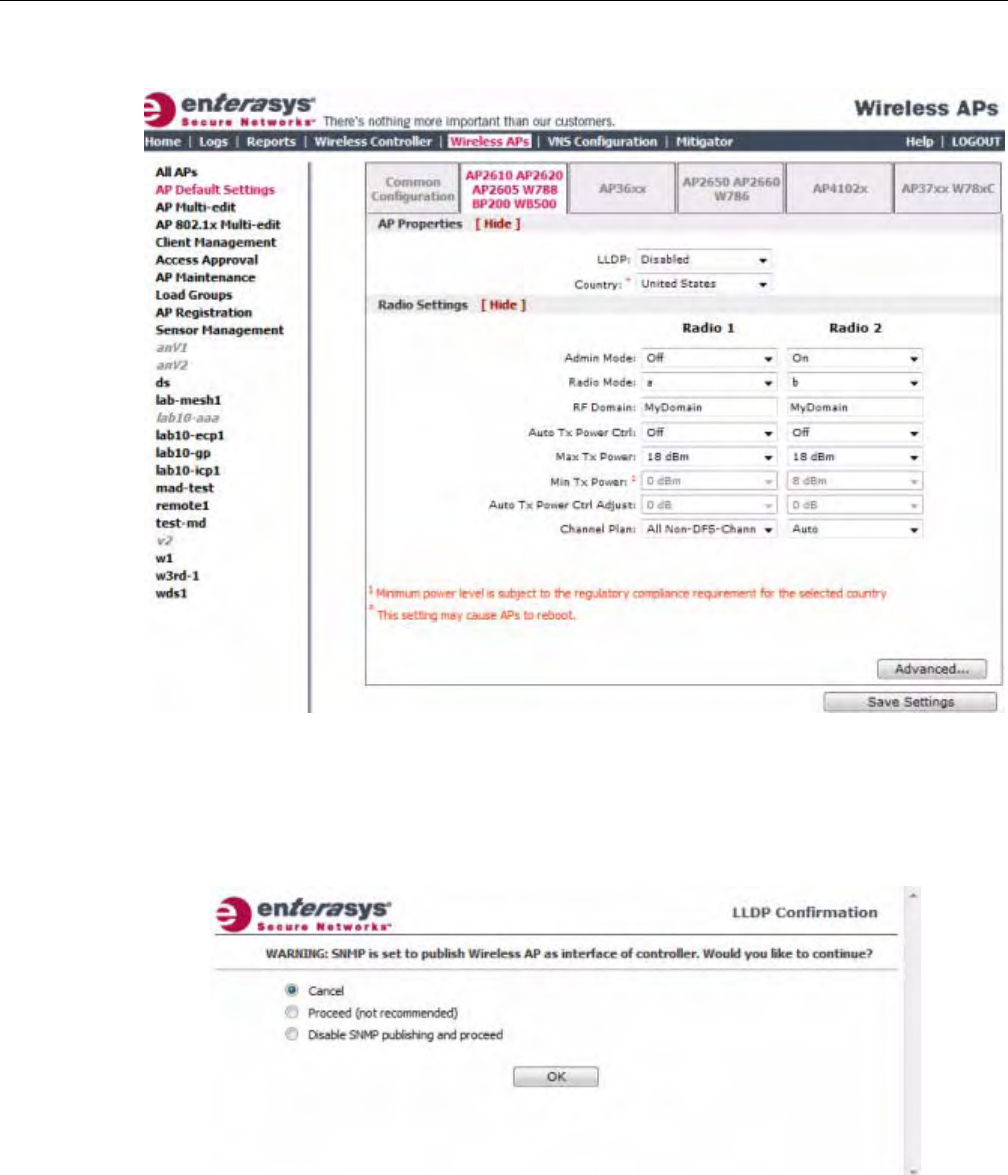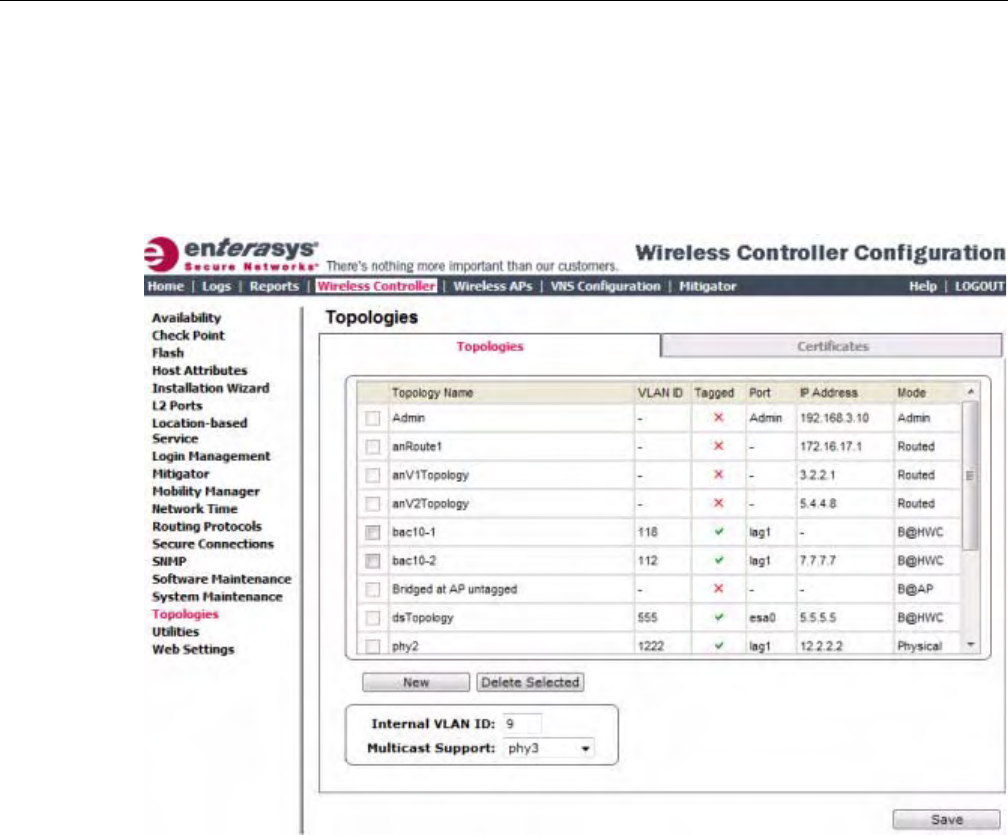 Enterasys Wireless Controllers that were configured to control