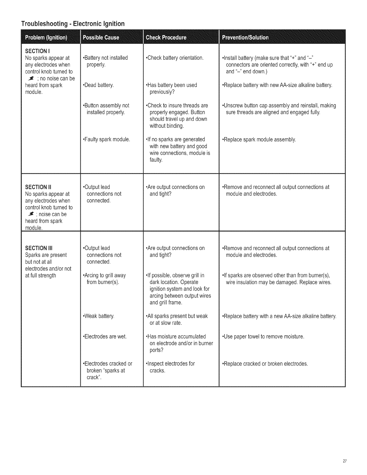 •Ifsparksareobservedotherthanfromburner(s),