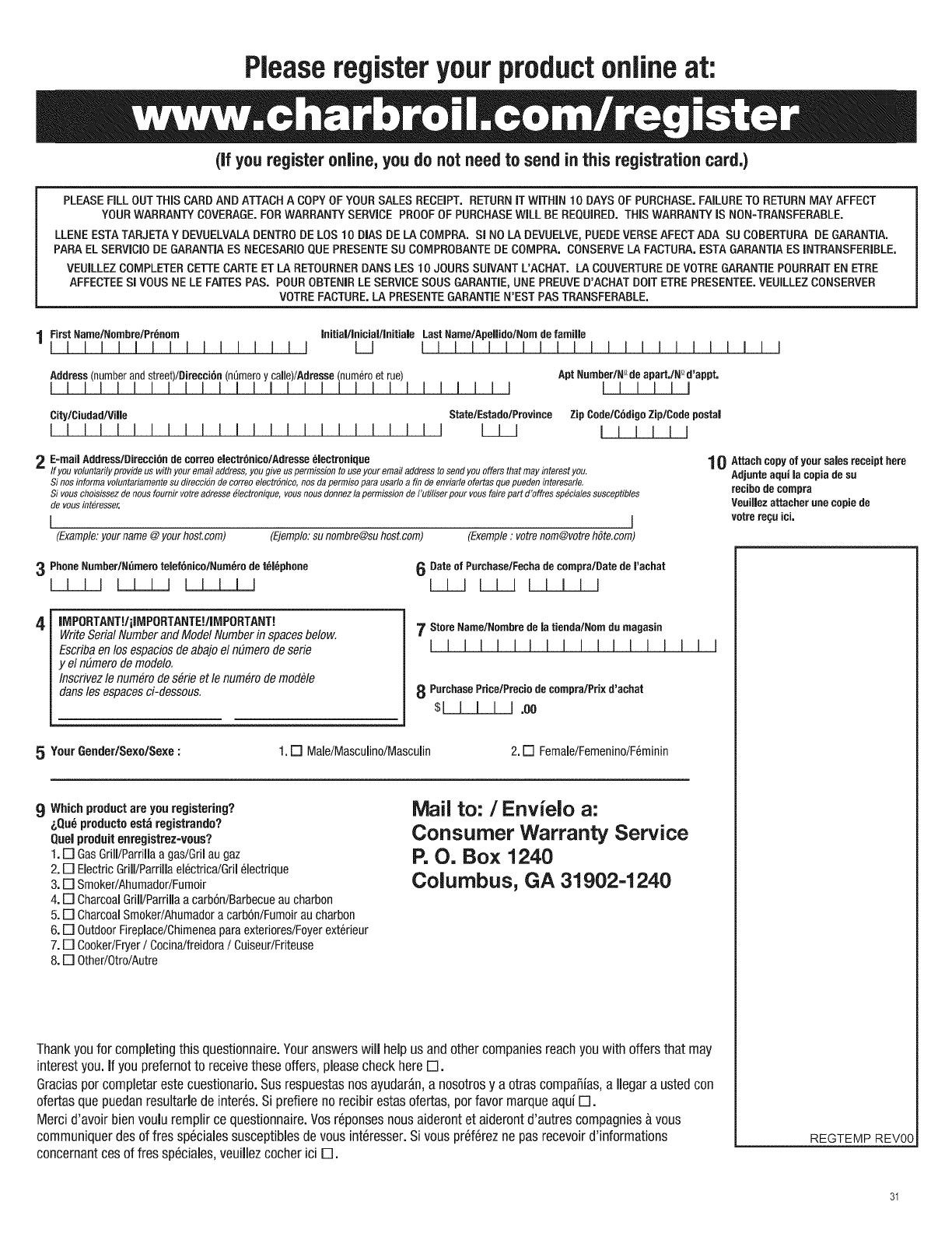 PLEASEFiLL OUT THiS CARDAND ATTACHA COPYOF YOURSALES RECEIPT. RETURNiT WiTHiN t0 DAYSOF PURCHASE.FAILURETO RETURNMAYAFFECT