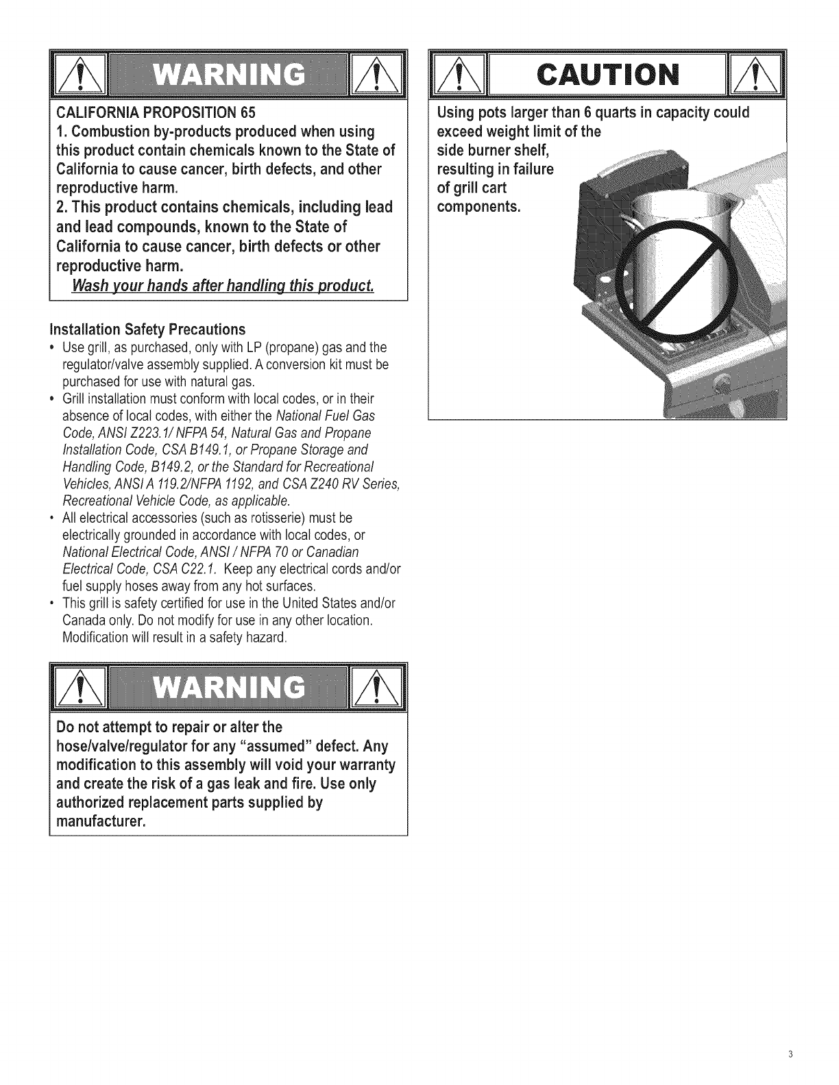 •Use grill, as purchased, only with LP (propane) gas and the