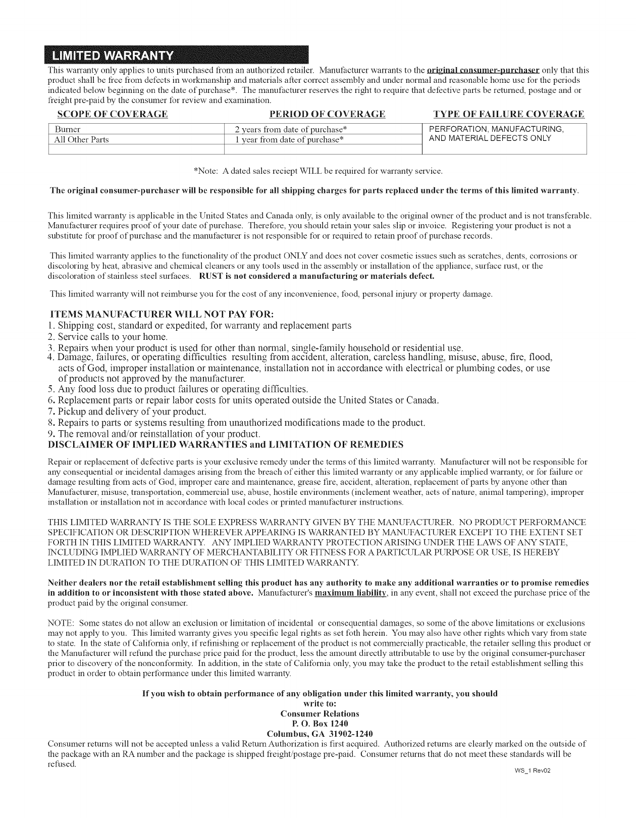 The following are trademarks of W.C. Bradley Co.: Commercial SeriesTM; Designer SeriesTM; Grill2Go@ AdvantageTM; Longhorn TM Double Chef TM QuickSetTM;
