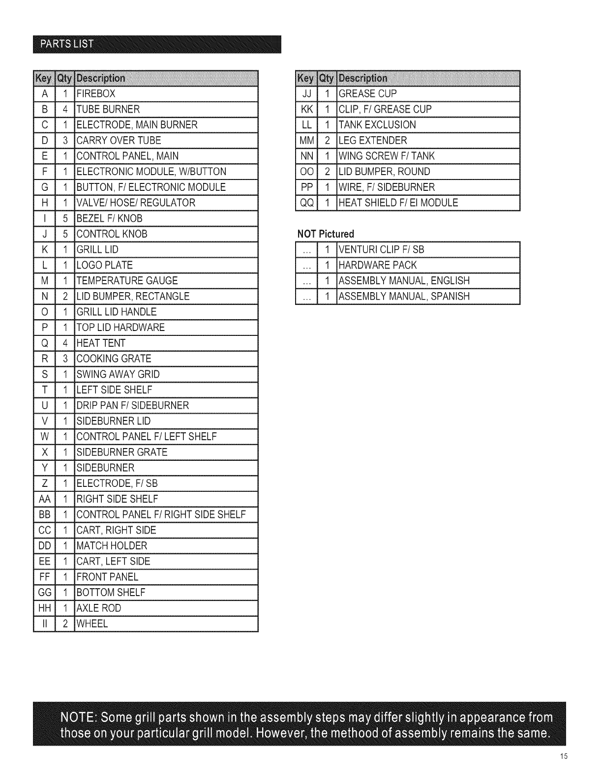 Parts List.......................................... 15