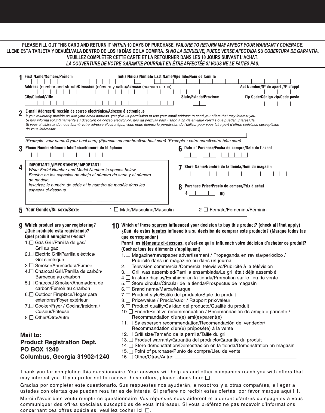 (If you register online, you do not need to send in this registration card.)