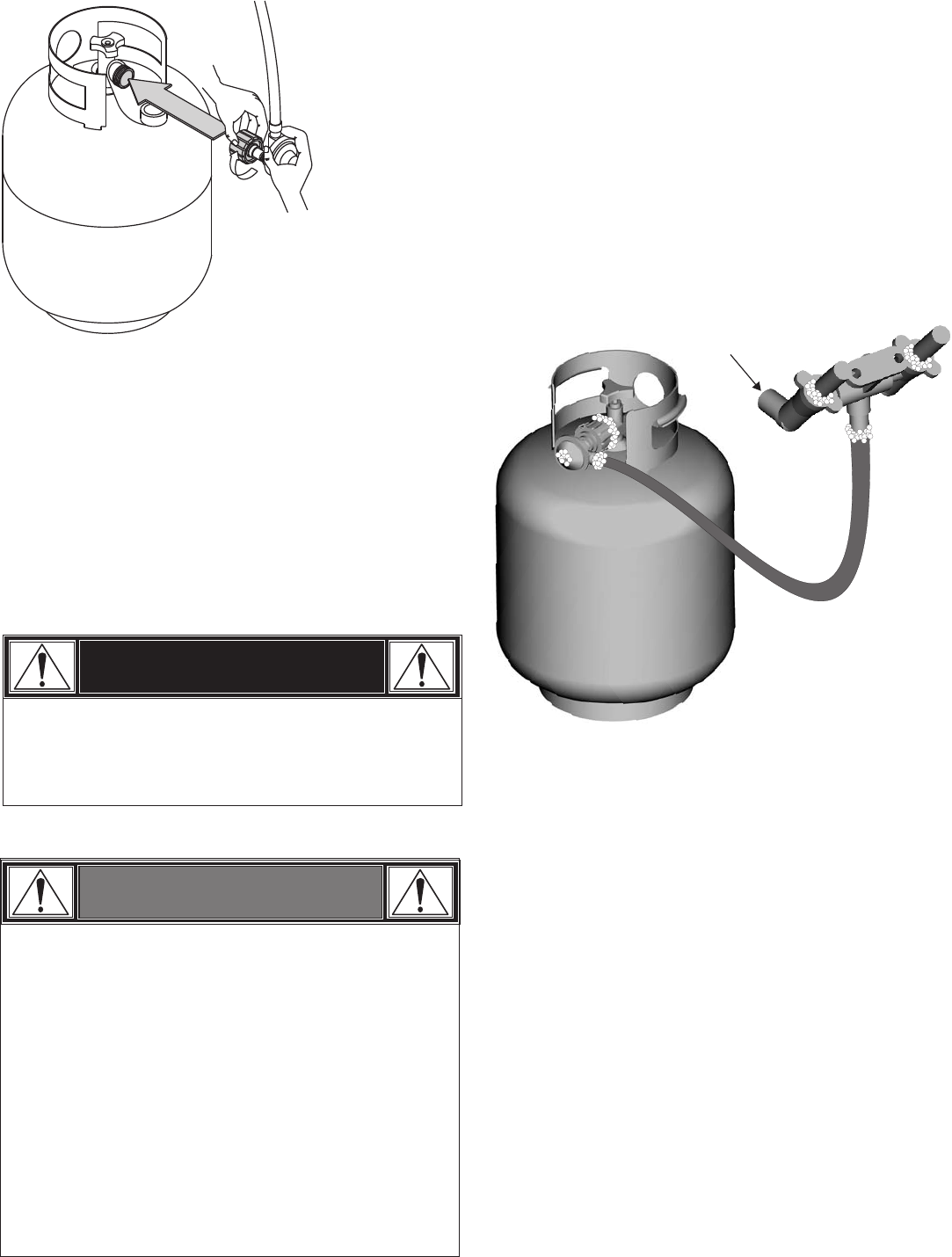 Never overfill LP cylinder. Overfilled cylinders may cause freeze-up of