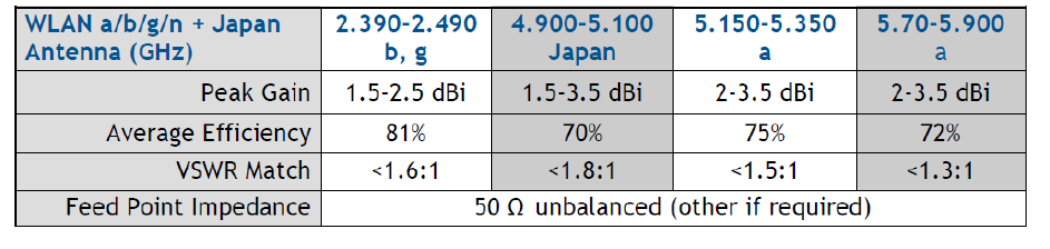 with Prestta WLAN Embedded Antenna. The specification of the antenna including
