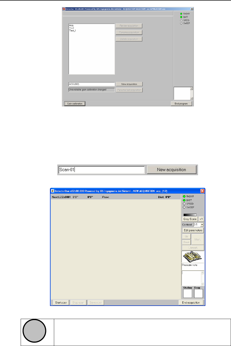 ¾ While the system is switched on, in the acquisition and elaboration phases and