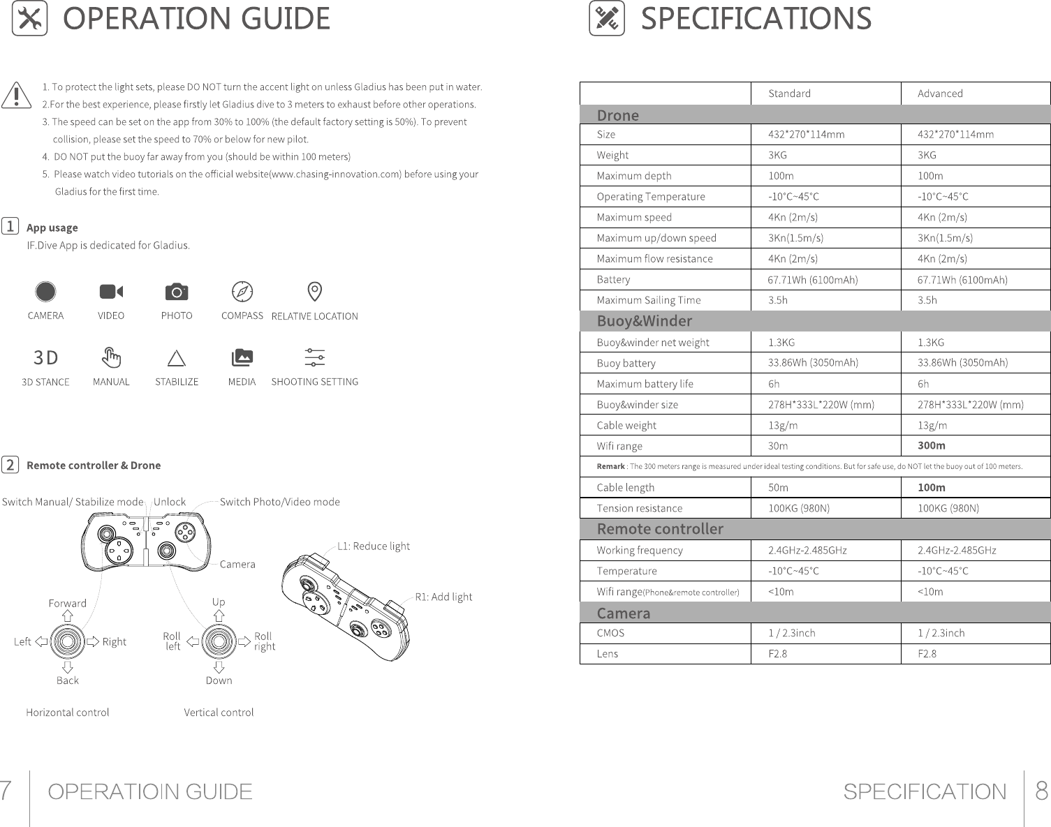 Chasing-Innovation Technology Co.,Ltd. Gladius submersible drone Users Manual