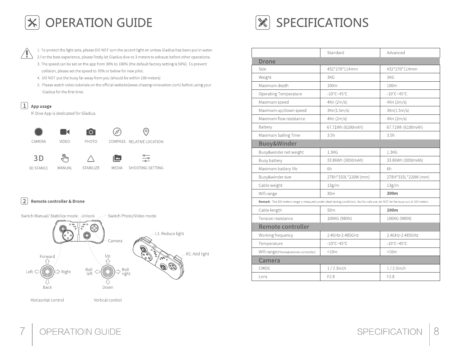 Chasing-Innovation Technology Co.,Ltd. Gladius submersible drone Users Manual
