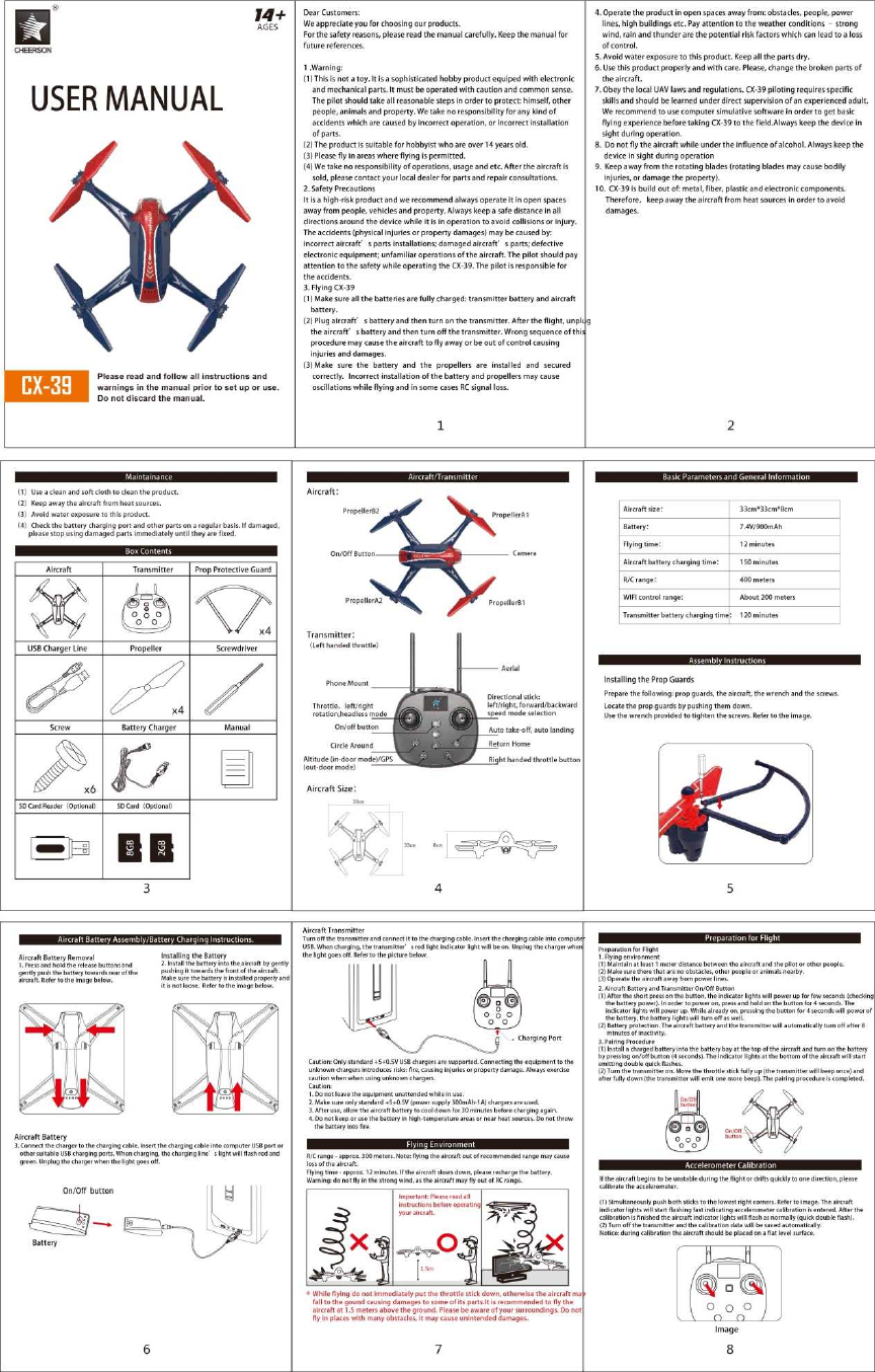 Cheerson Hobby Technology 03243901 Quadcopter User Manual CX 39