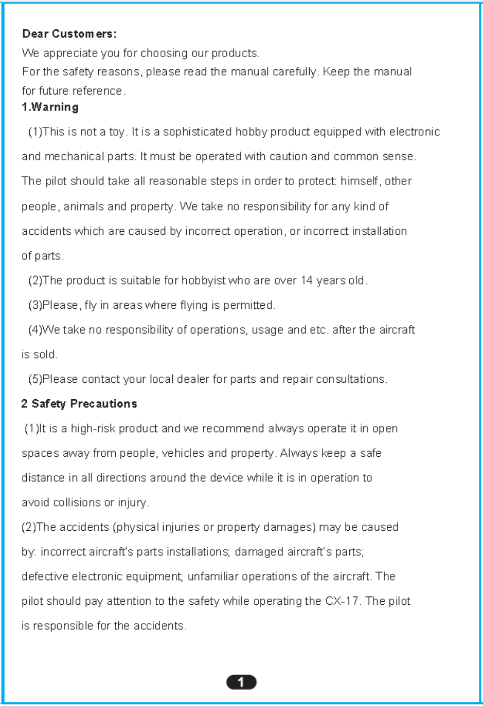 Hereby, Guangdong Cheerson Hobby Technology CO., LTD, declares that this aircraft is in