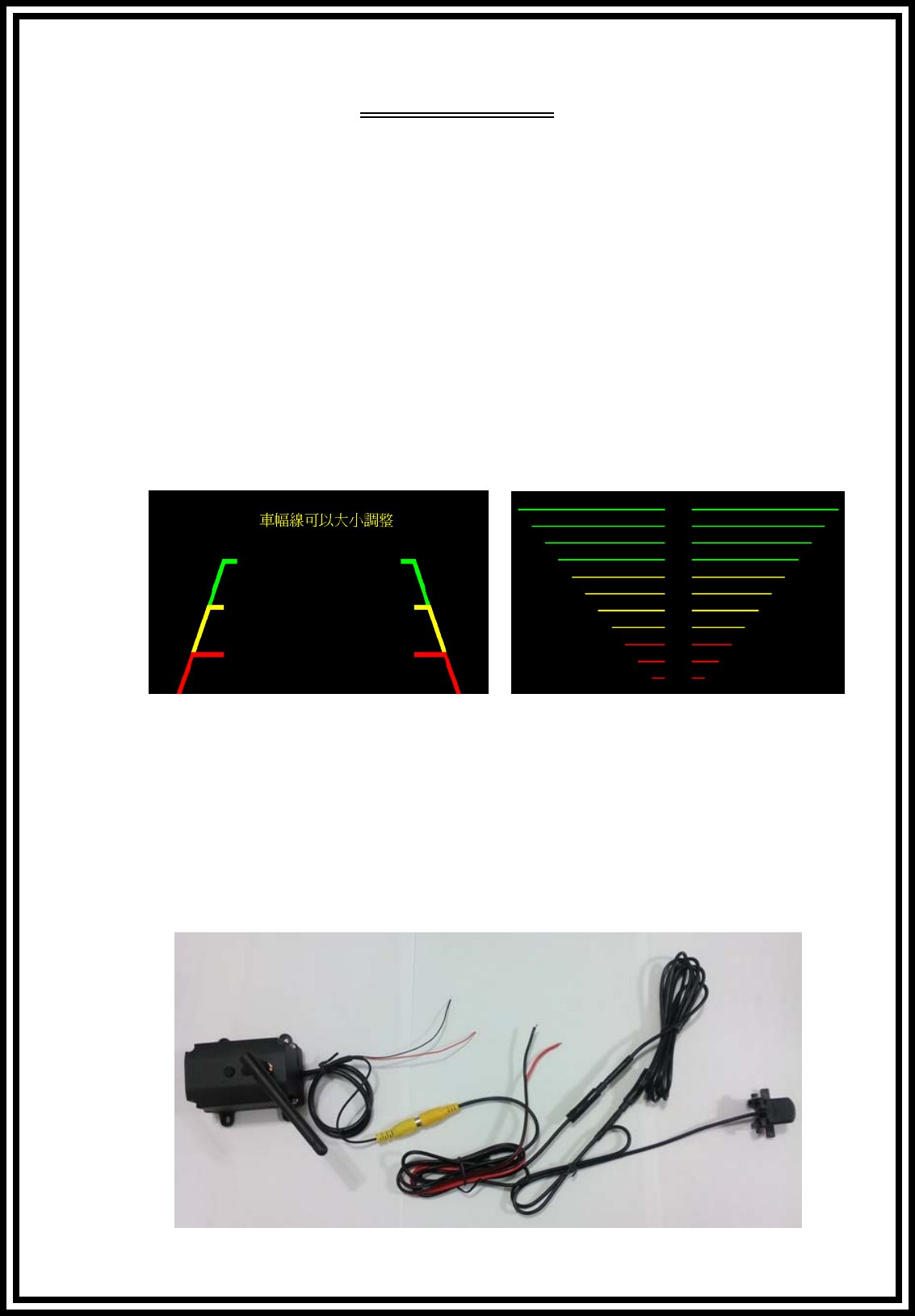 CH1 為倒車(車幅線);CH2 為掛休旅車箱(橫線條)。