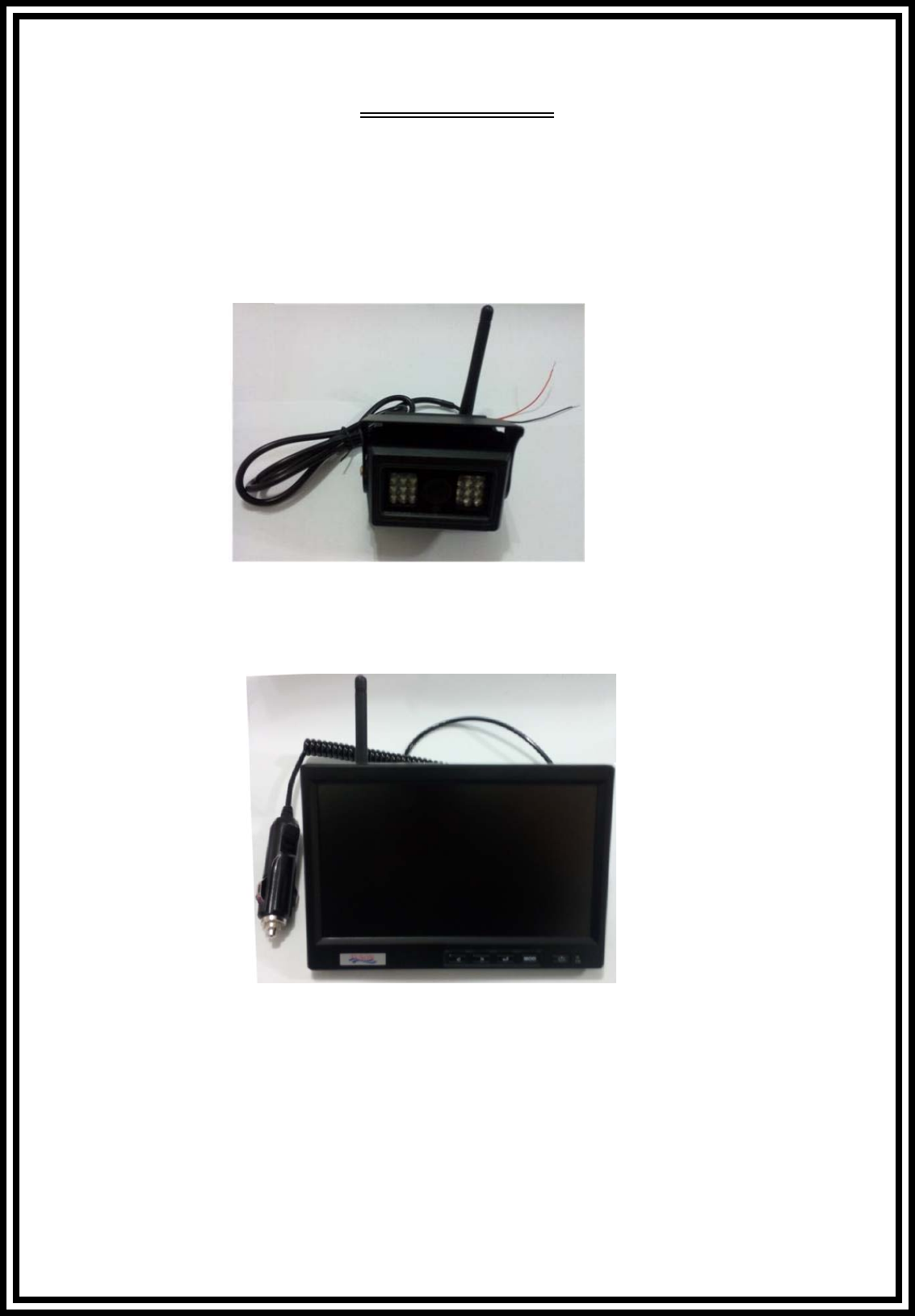 〔5〕 配件:螢幕、camera X2、天線 X2、說明書、螢幕固定架