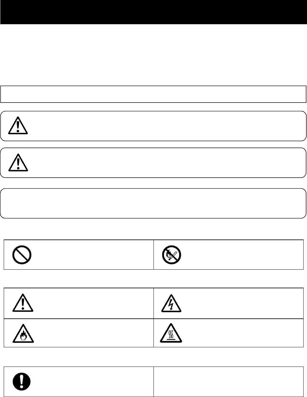 The symbols and the equipment illustrations in this manual are for safe usage of the equipment.
