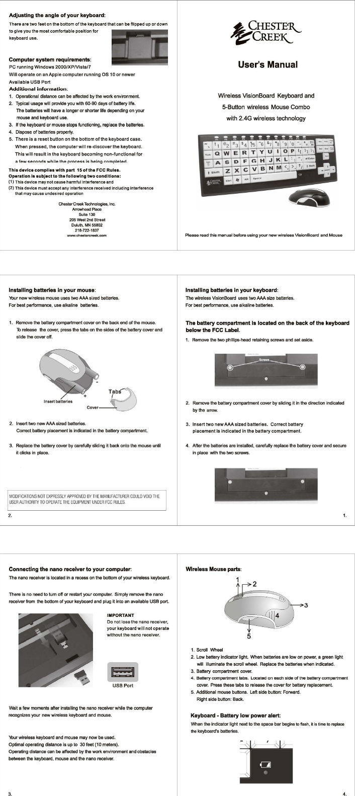 Chester Creek Technologies, Inc. Mouse of 2.4GKeyboard+Optical Mouse Combo Users Manual