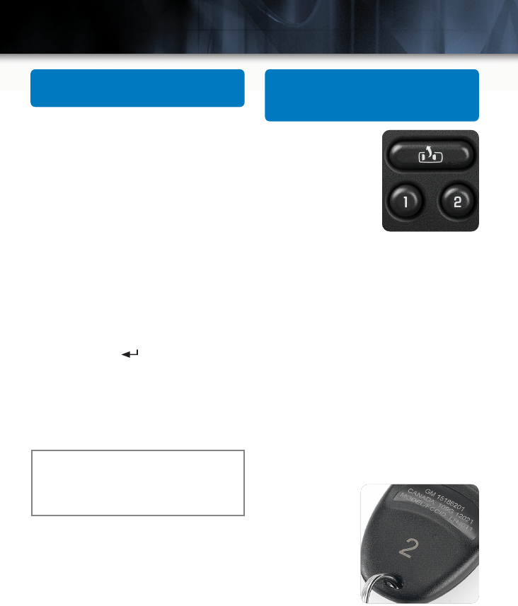 Memory Settings for Your Vehicle . . . . . . . . . .13