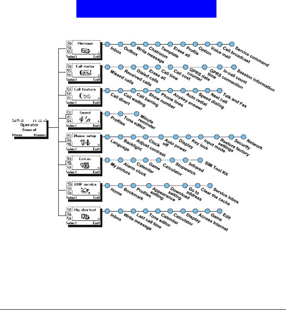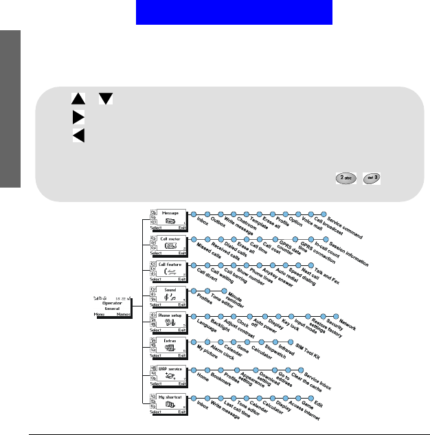 The main menu of your phone is accessed by pressing Menu in standby mode.