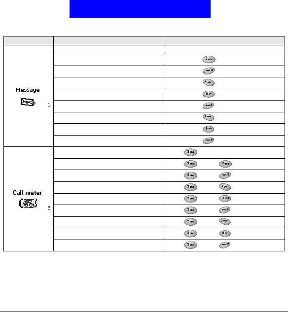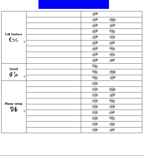 Menu To go to this item Press these keys