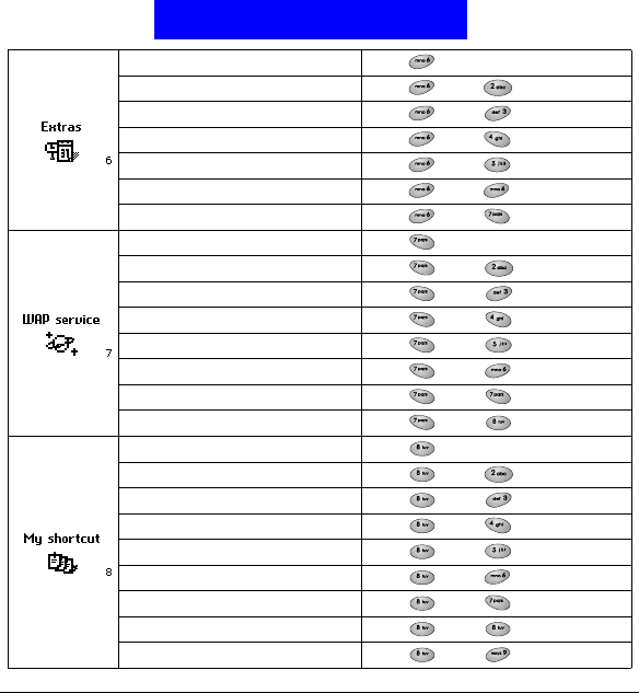 See Appendix for the quick access keys.
