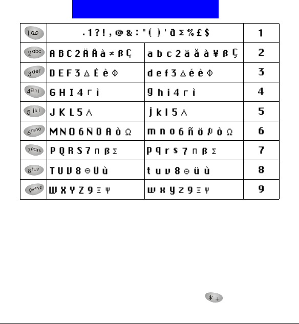symbols. Please see the table below for the mapping of keys and symbols.