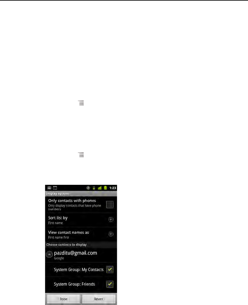 Changing which contacts are displayed 122