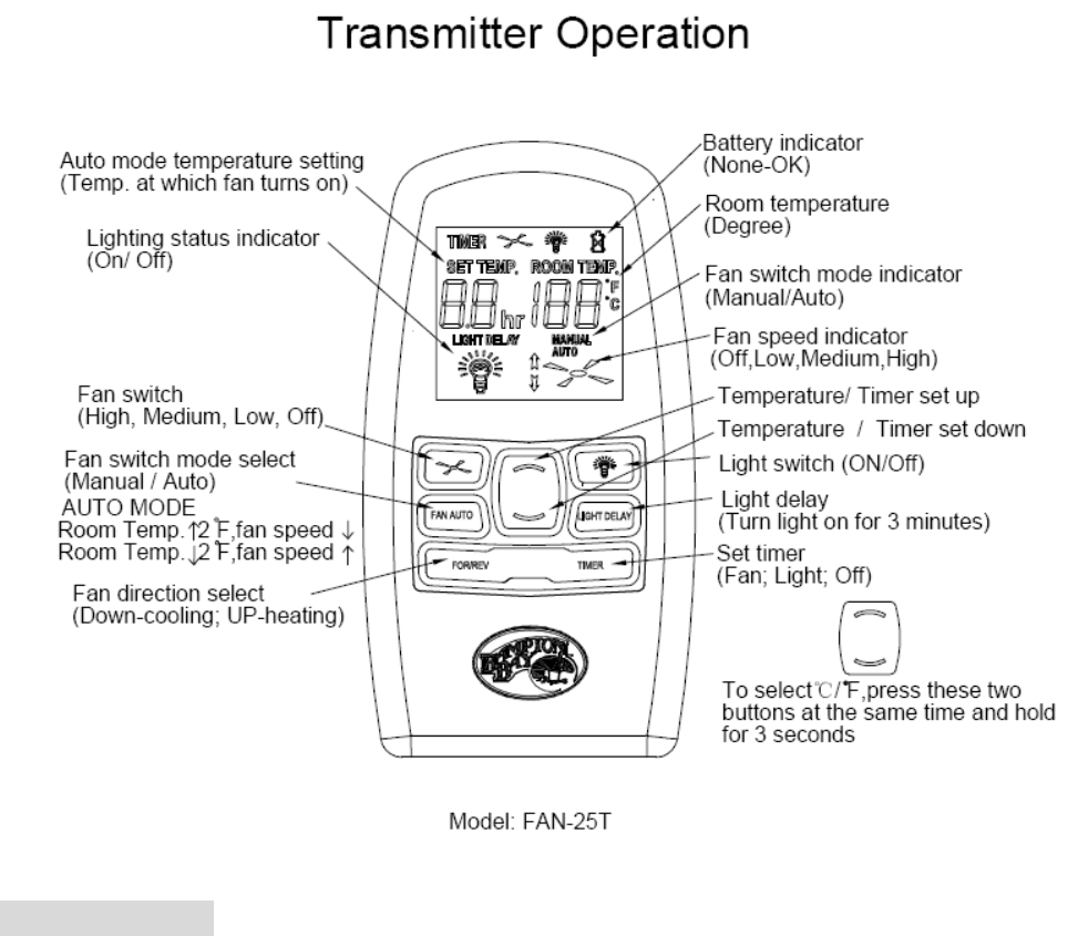 Chia Wei Electric Co FAN25T RF Remote Controller User Manual users manual