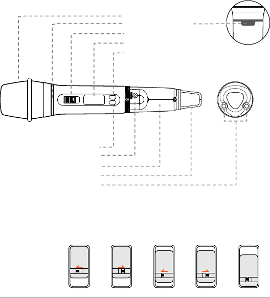 to the right to lock the microphone on stand-by or mute status. Slide to the