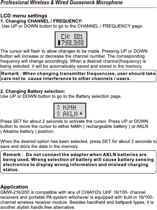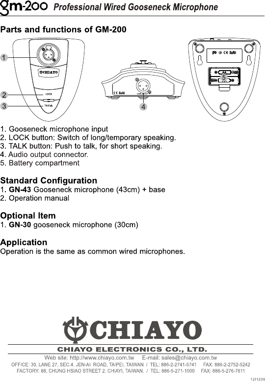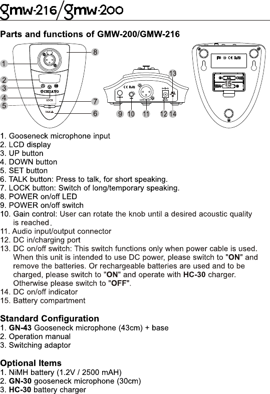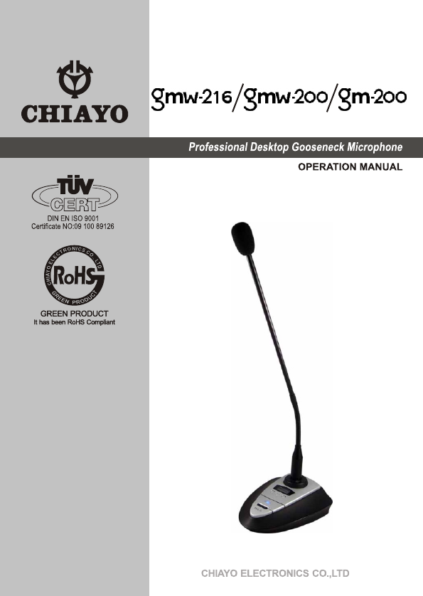 Chiayo Electronics Co GMW-216 Wireless Desktop Gooseneck Microphone User Manual GMW 200 216 GM 200 A5 12I1208 A6 fcc