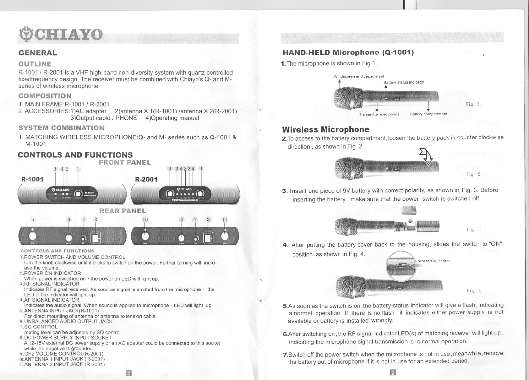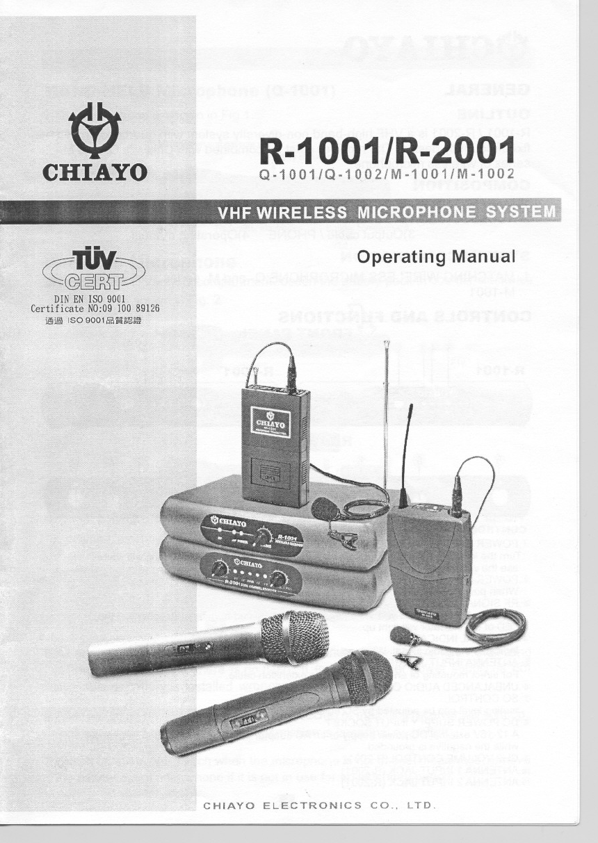 Chiayo Electronics Co M-1002 Wireless Microphone Transmitter User Manual